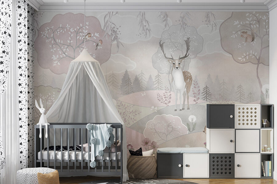 Predstavte si, že vstúpite do rozmarného lesa, kde majestátny jeleň ladne stojí medzi hravými zajačikmi a zvedavými líškami. Táto nástenná maľba nie je len kusom dekorácie, je to brána do očarujúcej rozprávkovej scény. Jemné pastelové farby vytvárajú pokojné pozadie, ktoré pozýva do každého priestoru pokoj a radosť. Ideálna do detskej izby alebo akéhokoľvek kúta, ktorý potrebuje kúzlo, určite vyvolá rozhovory a úsmevy. Predstavte si, ako sa pod pozorným pohľadom týchto zvieratiek odohrávajú rozprávkové dobrodružstvá, ktoré každému pripomenú, že aj tie najjednoduchšie okamihy môžu byť čistým kúzlom. Premeňte svoje steny na plátno fantázie!