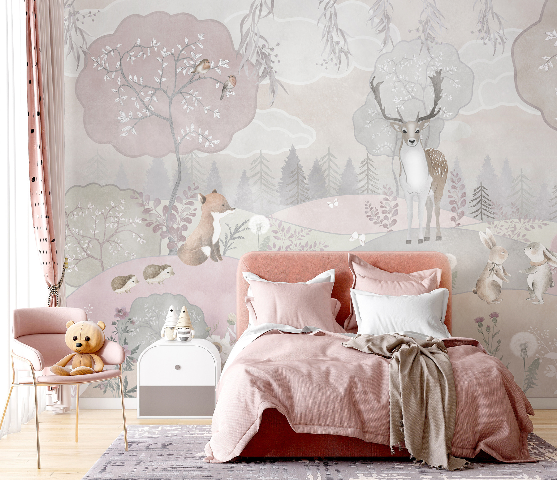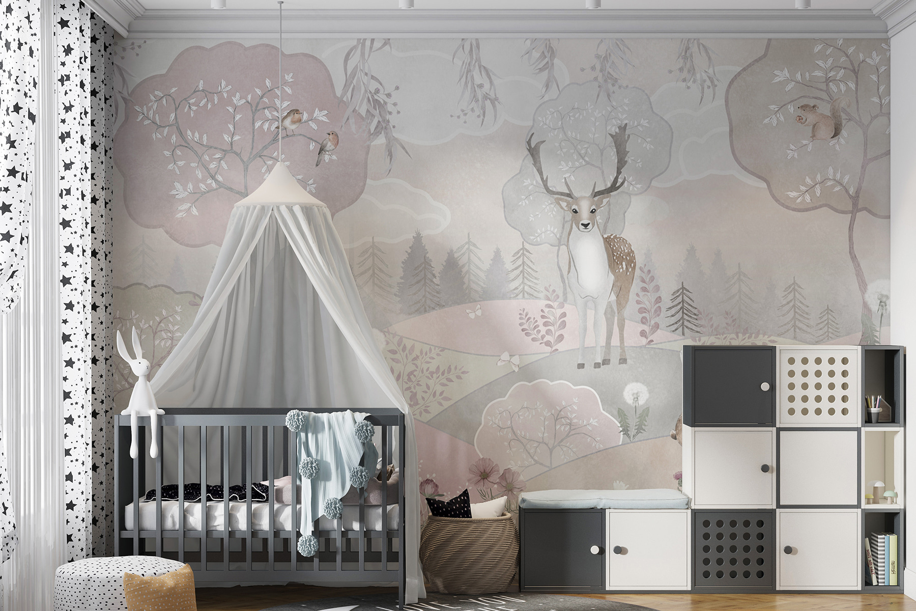 Predstavte si, že vstúpite do rozmarného lesa, kde majestátny jeleň ladne stojí medzi hravými zajačikmi a zvedavými líškami. Táto nástenná maľba nie je len kusom dekorácie, je to brána do očarujúcej rozprávkovej scény. Jemné pastelové farby vytvárajú pokojné pozadie, ktoré pozýva do každého priestoru pokoj a radosť. Ideálna do detskej izby alebo akéhokoľvek kúta, ktorý potrebuje kúzlo, určite vyvolá rozhovory a úsmevy. Predstavte si, ako sa pod pozorným pohľadom týchto zvieratiek odohrávajú rozprávkové dobrodružstvá, ktoré každému pripomenú, že aj tie najjednoduchšie okamihy môžu byť čistým kúzlom. Premeňte svoje steny na plátno fantázie!