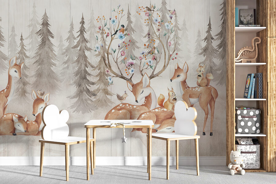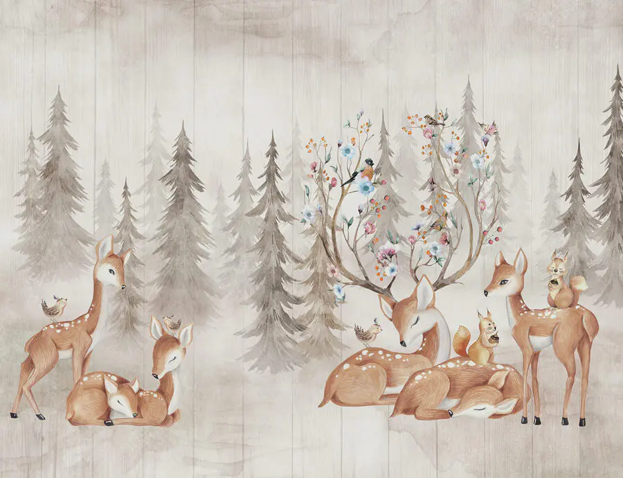Predstavte si, že každý deň vstúpite do lesného sna – aké je to očarujúce? Táto nástenná maľba “Vták sediaci na jeleňovi” je ako z rozprávkovej knihy. Jemné jelene a očarujúce vtáky vytvárajú scénu priamo z útulného, čarovného lesa. Perfektne sa hodí do detskej izby alebo detskej izby a prináša pocit jemného zázraku a pokoja.