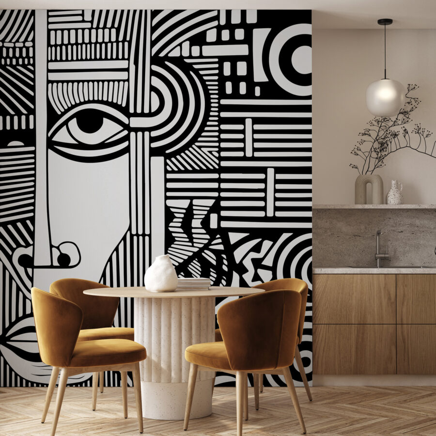 Toto nie je len nástenná maľba – je to kus moderného umenia, ktorý môže úplne zmeniť váš priestor. Vďaka zložitým čiernym a bielym líniám vytvárajúcim abstraktnú tvár je to ako mať na stene majstrovské dielo inšpirované Picassom priamo vo vašej obývačke. Vďaka odvážnym vzorom a výrazným kontrastom ho nikto nemôže ignorovať.