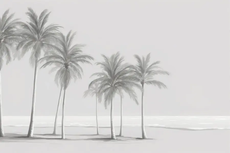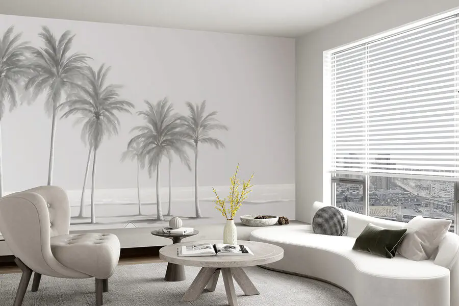 Táto nástenná maľba obsahuje scénu s niekoľkými vysokými elegantnými palmami, ktoré sa jemne kolíšu, akoby sa ich dotýkal pobrežný vánok. Vďaka jemným, tlmeným farbám pôsobí takmer snovo, trochu ako historická fotografia zachytávajúca pokojný deň na pobreží. Hodí sa do akéhokoľvek interiéru – moderného, boho, ako chcete. Navyše je mimoriadne upokojujúci; je to pohľad, ktorý vás okamžite prinúti vydýchnuť si.