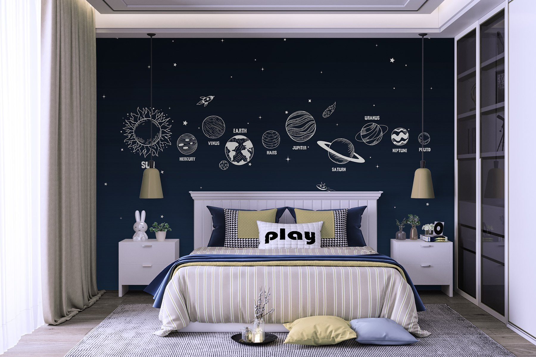 Predstavte si, že vaša stena získa úplne nový vesmír – doslova! Táto nástenná maľba “Kresba slnka” vyžaruje šarm a zázrak a je ideálna pre priestory, ktoré potrebujú štipku nápaditosti. Deti budú zbožňovať obiehajúce planéty a veselé slnko, vďaka ktorým budú rozprávky pred spaním alebo hry ako z iného sveta. Je to dokonalá kombinácia: vzdelávacie vibrácie pre najmenších a správny nádych modernej pohody aj pre dospelých. Perfektne sa hodí do detskej izby alebo aj do nepredvídateľného obytného priestoru. Navyše, kto by nechcel mať galaxiu priamo doma? Je to ako mať okno ku hviezdam – ale bez chladných nocí vo vesmíre. Rozpútavač konverzácie, zútulňovač a úprimne povedané – jednoducho zábava!