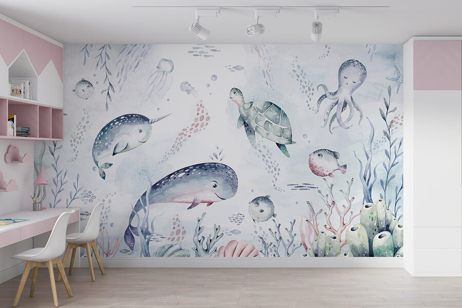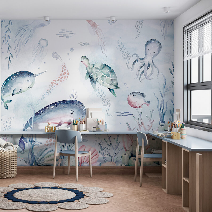 Ahoj! Predstavujete si niekedy, že sa pri každom vstupe do miestnosti prenesiete do snového podmorského sveta? Táto akvarelová nástenná maľba vám pomôže. Je to ako rozmarná spŕška oceánskej mágie, doplnená o super pohodovú korytnačku, ktorá sa plaví očarujúcim morom. Ideálna pre deti, dojčatá alebo kohokoľvek, kto je fanúšikom prímorskej atmosféry. Tlmené, ale živé farby vytvárajú pokojnú, takmer hravú oceánsku scénu s rozkošnými plávajúcimi morskými tvormi – máte pocit, akoby samotný oceán dal vašim stenám pusu. Nie je to len dekorácia, je to mini dobrodružstvo, ktoré čaká na to, aby sa stalo!