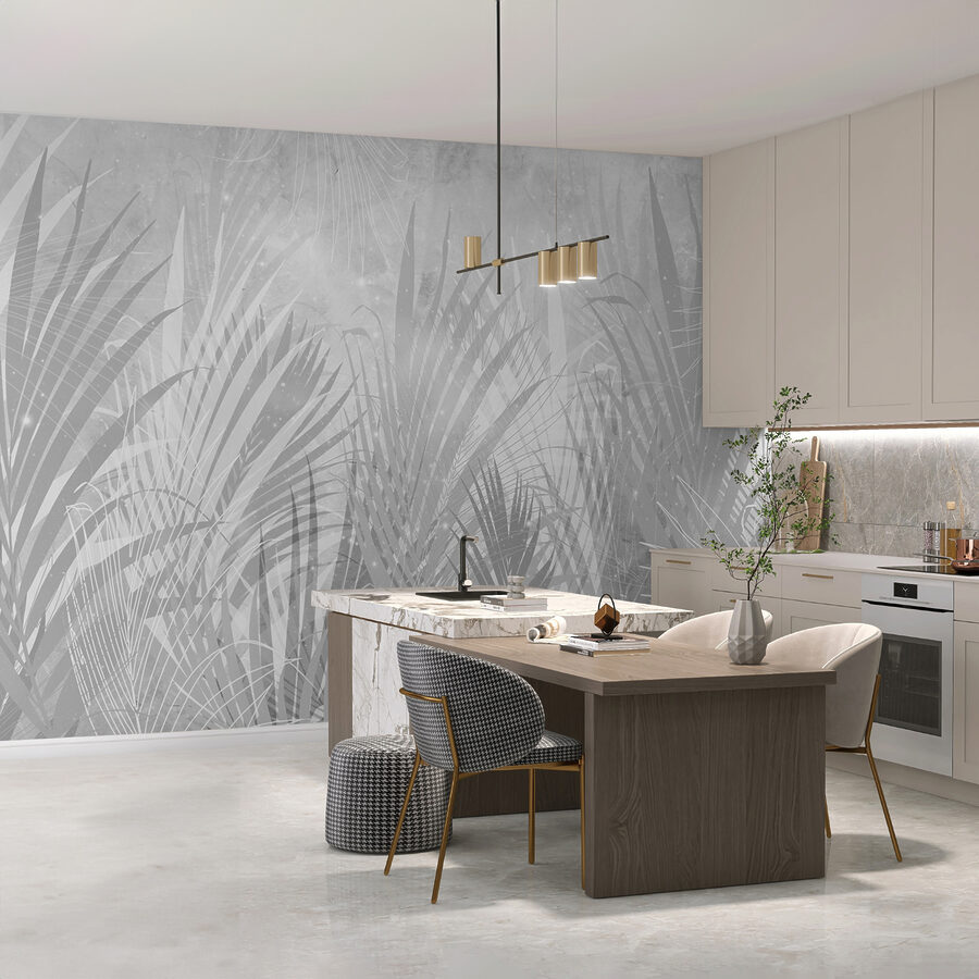 Pozdravte “Nástenné maľby sivobiely obraz rastlín” – ideálne na vnesenie trochy tropického zenu do vášho útulného zákutia. Predstavte si, že sa každý deň prebúdzate s pokojnou scénou palmových listov, ktoré sú odeté do upokojujúcich odtieňov sivej a bielej. Je to ako pokojná atmosféra džungle bez chrobákov!
