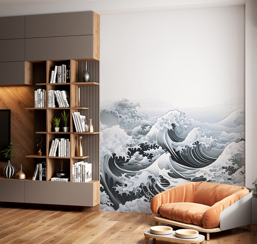 S nástennou maľbou Vlny v oceáne premeníte akýkoľvek priestor na pokojný prímorský oddych. Predstavte si to: obývacia izba, ktorá pôsobí ako bezstarostné útočisko pri oceáne, doplnené rytmickým tancom dvíhajúcich sa vĺn. Každý pohľad na túto nástennú maľbu evokuje upokojujúci zvuk narážajúceho príboja a slaného vzduchu, takže je ťažké nesnívať o plážových dňoch. Či už v spojení s plážovým interiérom, alebo ako výrazný prvok v nenápadnom priestore, navodzuje pocit pokoja. Hostia môžu dokonca očakávať, že ich navštívi čajka! Ideálne pre tých, ktorí milujú pobrežnú atmosféru bez všade prítomného piesku.