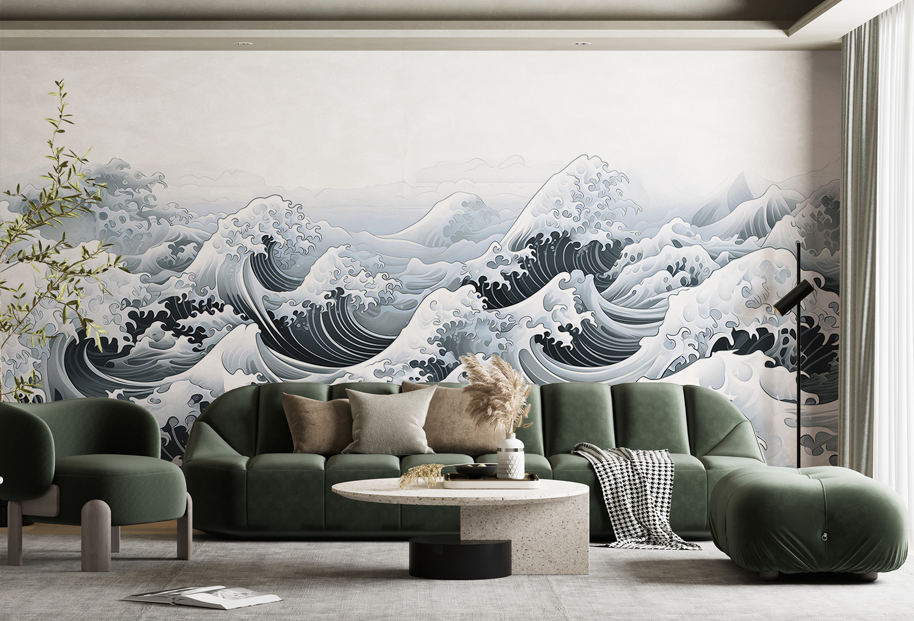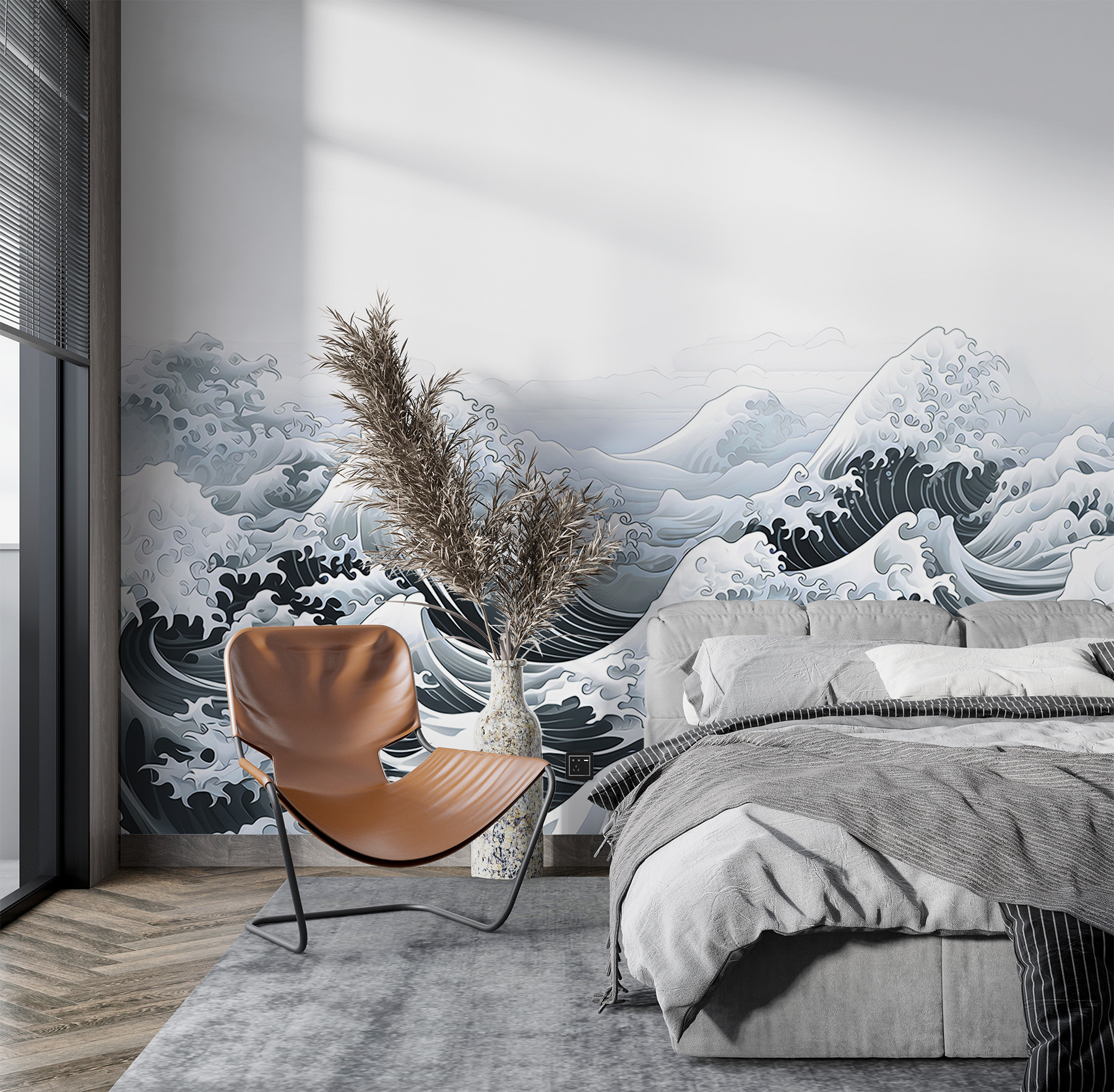 S nástennou maľbou Vlny v oceáne premeníte akýkoľvek priestor na pokojný prímorský oddych. Predstavte si to: obývacia izba, ktorá pôsobí ako bezstarostné útočisko pri oceáne, doplnené rytmickým tancom dvíhajúcich sa vĺn. Každý pohľad na túto nástennú maľbu evokuje upokojujúci zvuk narážajúceho príboja a slaného vzduchu, takže je ťažké nesnívať o plážových dňoch. Či už v spojení s plážovým interiérom, alebo ako výrazný prvok v nenápadnom priestore, navodzuje pocit pokoja. Hostia môžu dokonca očakávať, že ich navštívi čajka! Ideálne pre tých, ktorí milujú pobrežnú atmosféru bez všade prítomného piesku.