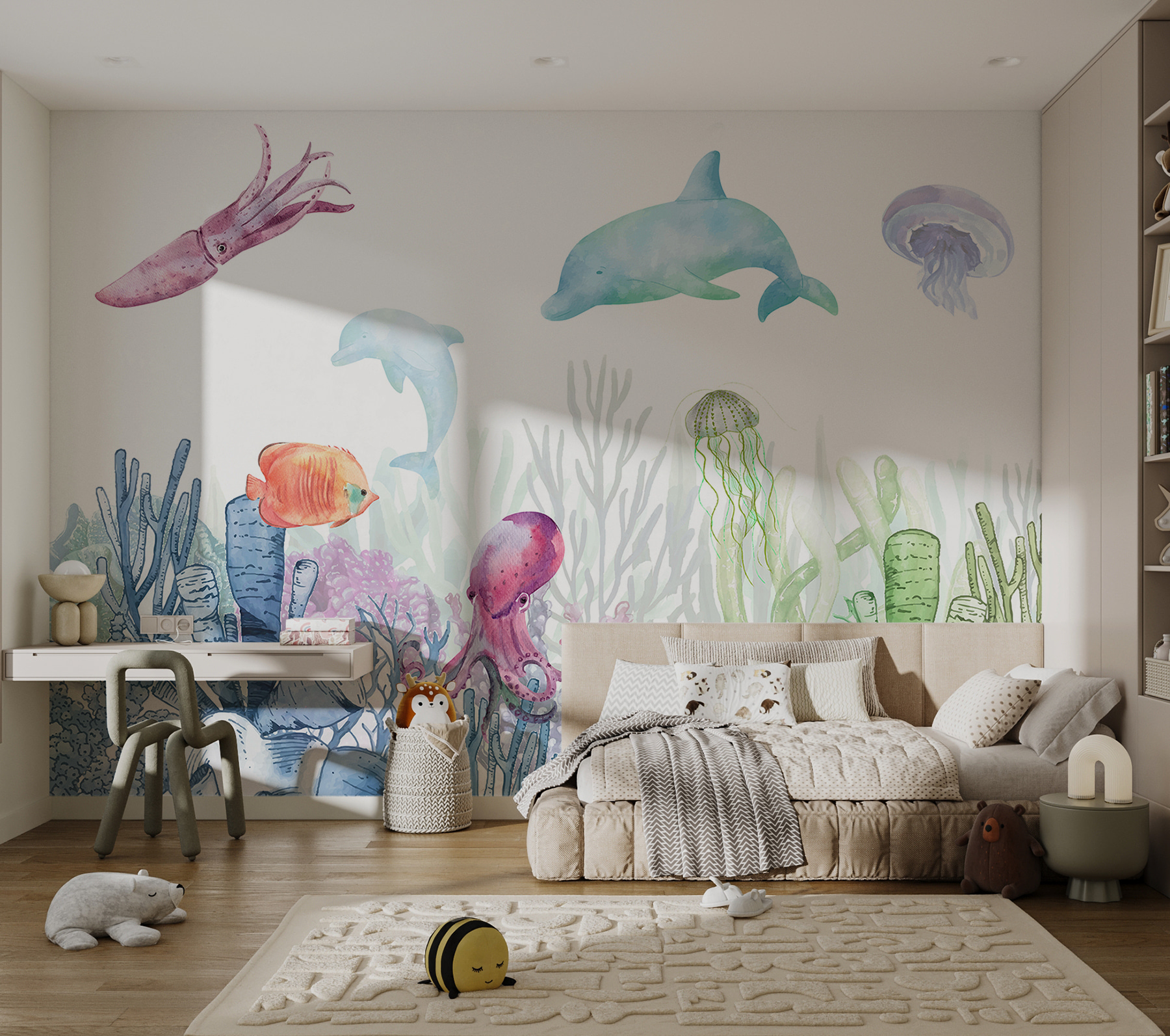 Ideálne na to, aby sa každý priestor cítil trochu rozmarnejšie a oveľa výnimočnejšie. Ponorte sa a nechajte svoje steny obmývať podmorskými zázrakmi!