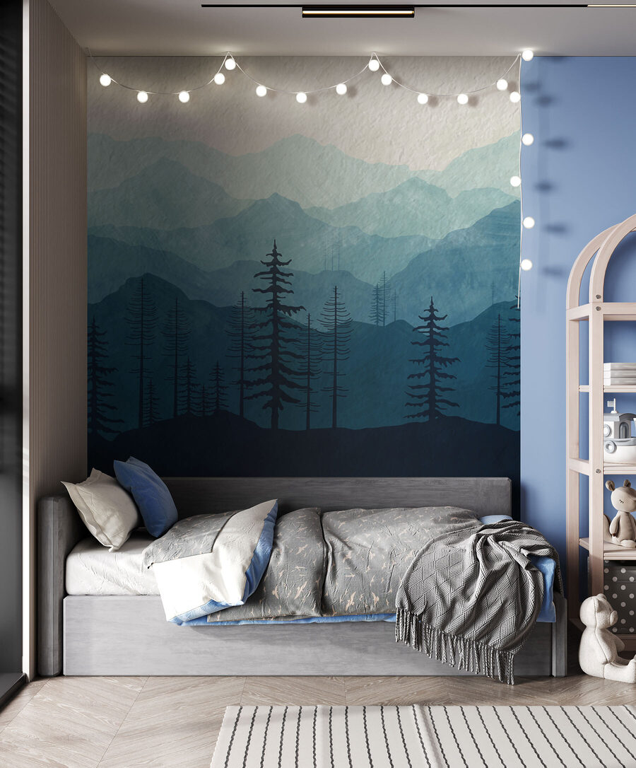 Snívali ste niekedy o tom, že sa prebudíte v útulnej chate uprostred hlbokého, pokojného lesa? Táto “Nástenná fototapeta Silueta stromu” je vašou expresnou vstupenkou do pokoja bez toho, aby ste museli opustiť svoj domov. Predstavte si akvarelové vrstvy majestátnych hôr a vysokých, pokojných stromov, ktoré sa tiahnu po stene a takmer šepkajú pokoj a tajomstvá prírody do vášho priestoru.