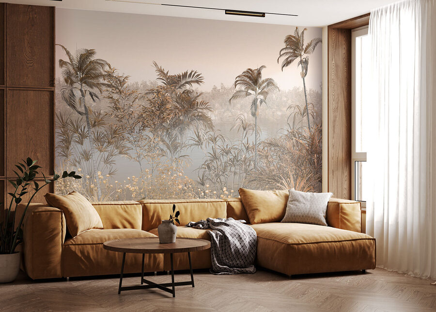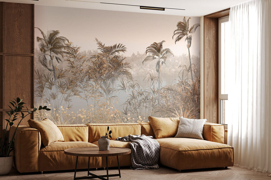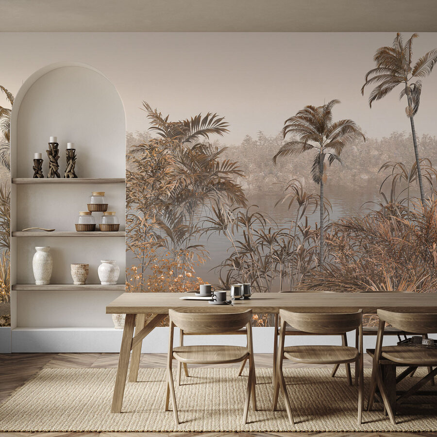 Predstavte si, že sa pri každom vstupe do izby prenesiete do pokojnej oázy pri vode. Presne to získate s “nástennou maľbou Palma pri vodnej ploche”. Je to ako popíjanie kokosovej vody s prídavkom tichého rozjímania. Táto nástenná maľba je ideálna na to, aby ste do interiéru preniesli matku prírodu, a to všetko sú upokojujúce vibrácie – palmy sa jemne kolíšu, vodná plocha odráža oblohu a pokojné prostredie, ktoré nabáda k snívaniu. Je to sladká bodka medzi dekorom inšpirovaným prírodou a malým únikom pre zmysly. Predstavte si, že vstúpite do priestoru, v ktorom sa vždy cítite sviežo a ľahko – dokonca aj počas stresujúcich dní. A ak správne prižmúrite oči, možno budete počuť šepot palmových listov a pocítite chladný vánok.