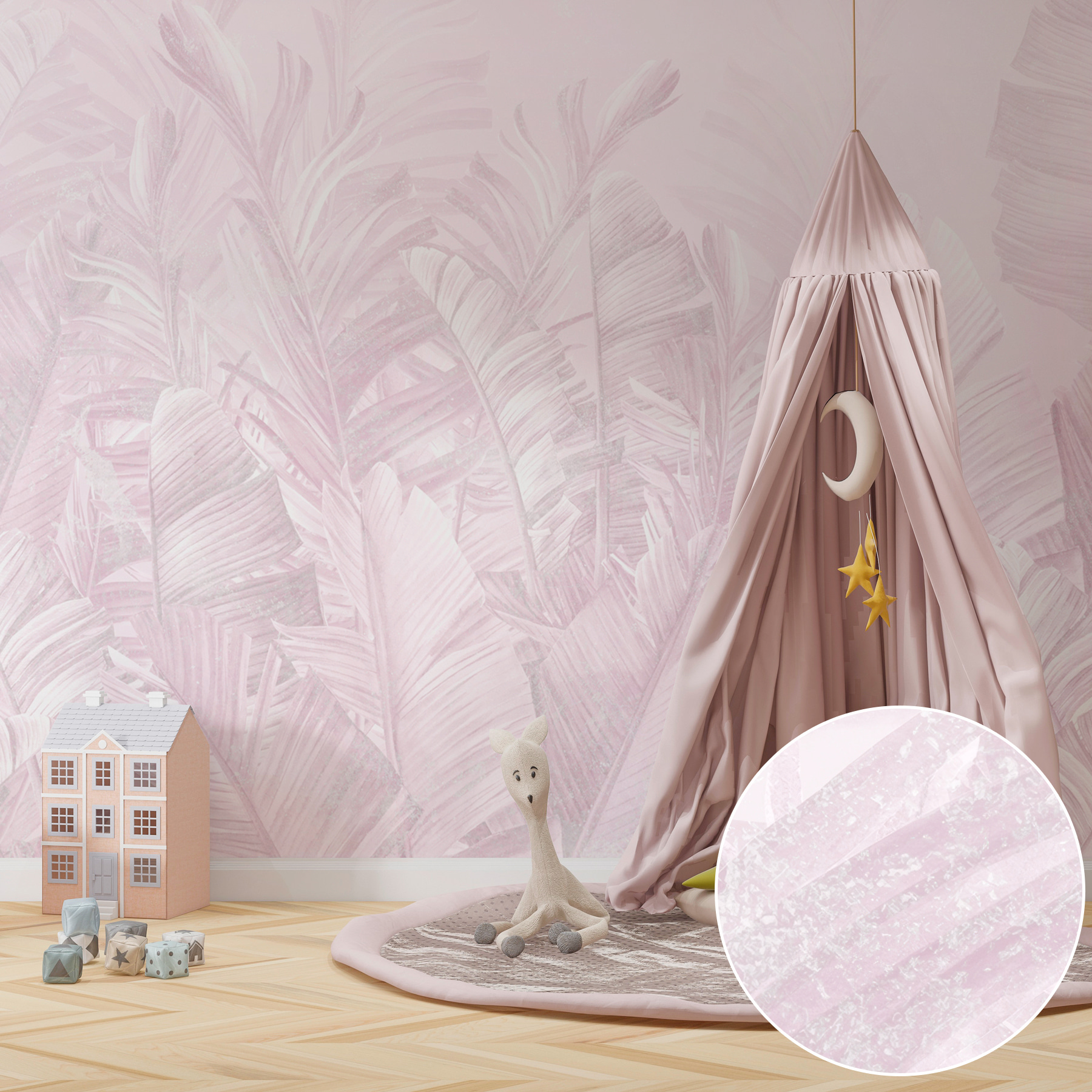 Predstavte si, že si do obývačky prinesiete kúsok tropického pokoja vďaka nástennej maľbe “Jemné pastelové palmové listy”. Svojimi jemnými farbami a elegantným vzorom palmových listov je ako šepot pokoja. Ideálna pre každého, kto potrebuje miniatúrnu scenériu pri popíjaní rannej kávy. Táto nástenná maľba dodáva nádych prírody bez potreby zalievania – len krásnu zeleň bez námahy, vďaka ktorej sa každá miestnosť bude cítiť príjemne a sviežo. Je to niečo ako mať na stene minivýstavku, ktorá upokojuje a je moderná. Ideálna na vytvorenie zasnenej atmosféry vo vašom obľúbenom priestore na oddych. Čo si na tom nezamilovať?