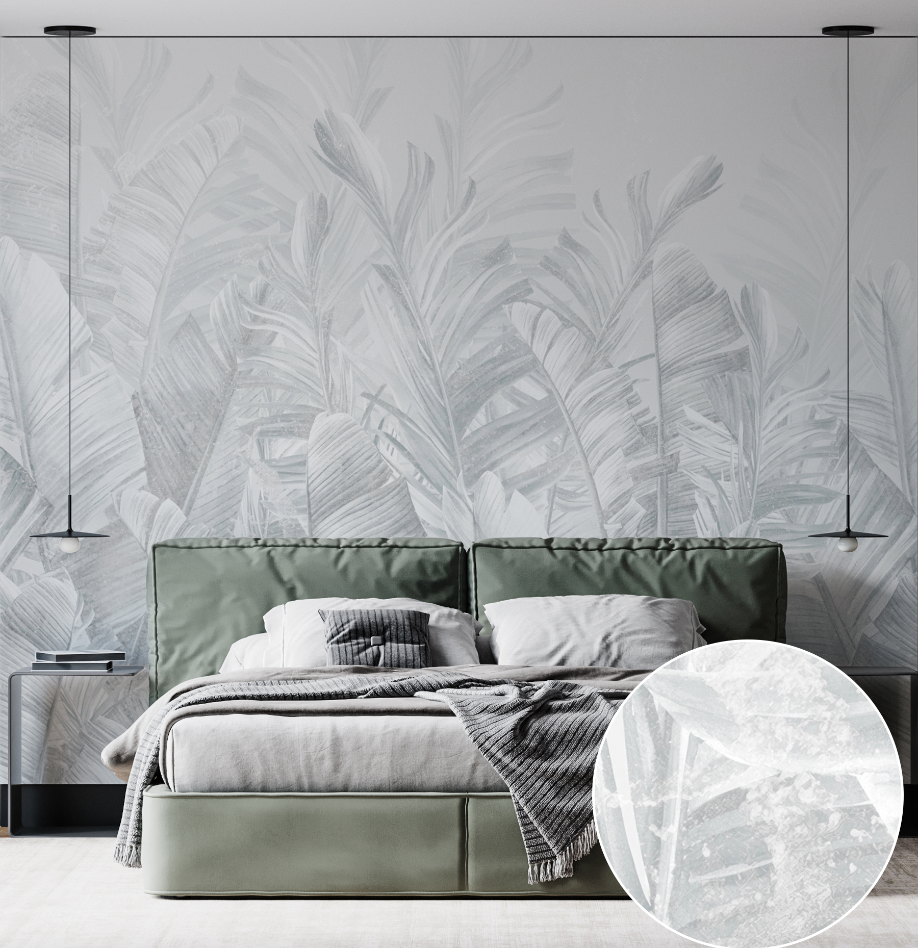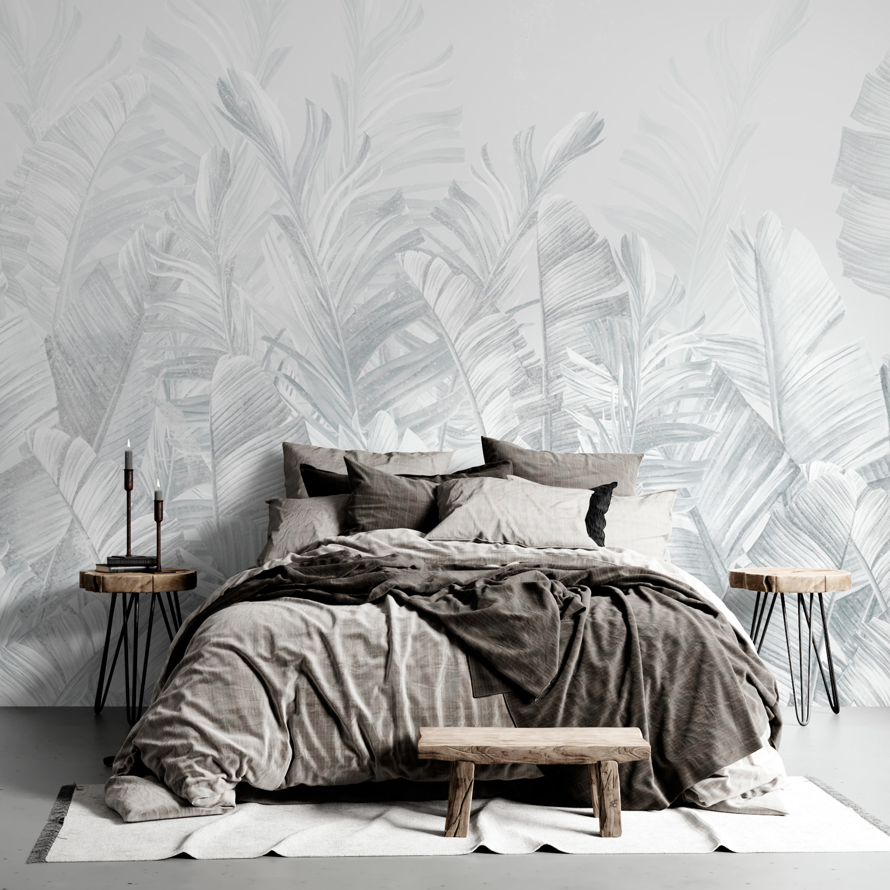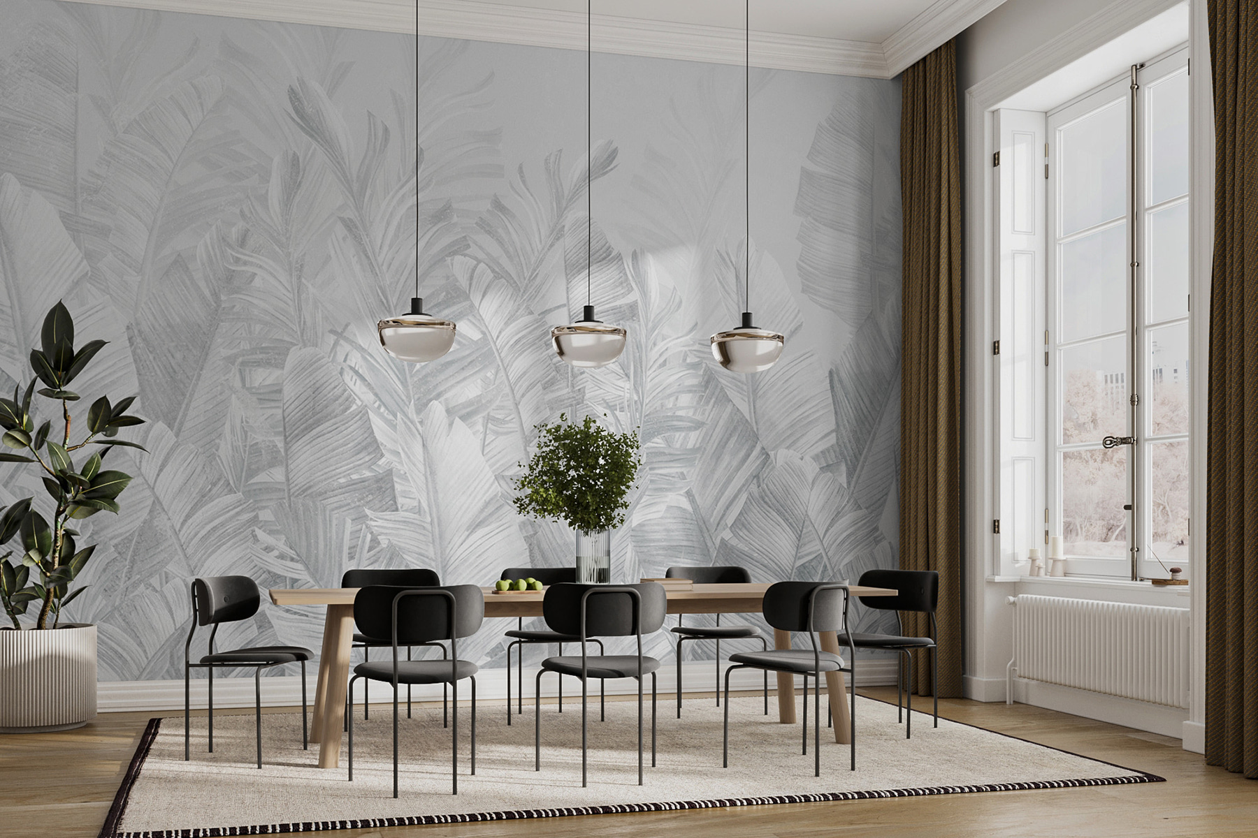 Predstavte si to – stena, ktorá je viac ako len stena. Nástenná maľba “Skupina bielych listov” je ako vstup do oázy v džungli zaliatej slnkom, bez komárov. Má jemnú sivú atmosféru, vďaka čomu je dostatočne univerzálna na to, aby vkĺzla do akejkoľvek miestnosti – predstavte si ju ako svojho dekoračného chameleóna. Každý biely list pôsobí takmer ako živý a vyvoláva predstavu bezstarostných tropických eskapád. Na jeho jemnej kráse je niečo zvláštne upokojujúce. Stavím sa, že niekto, kto sa naň pozerá pri popíjaní rannej kávy, môže mať pocit, že začína svoj deň v pokojnej svätyni. Je ideálny pre snívajúcich, ktorí potrebujú tropický únik bez toho, aby museli opustiť domov – pridajte ho do relaxačného kútika alebo ním urobte nečakané vyhlásenie vo svojom elegantnom mestskom priestore. Táto nástenná maľba nie je len umením, je to atmosféra. Navyše je bezúdržbová – nie je potrebné ju zalievať!