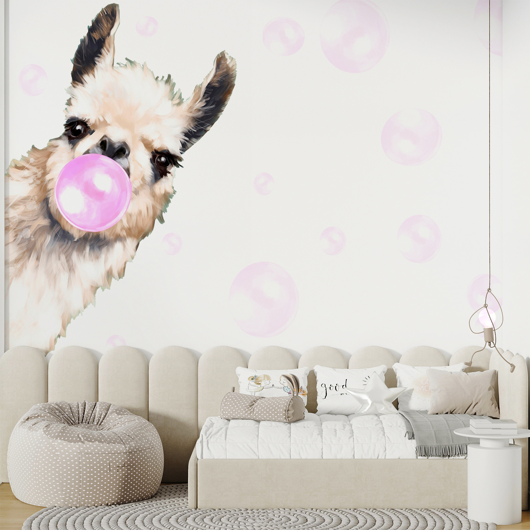 Predstavte si, že vojdete do miestnosti a privíta vás lama, ktorá fúka ružovú bublinu – je to okamžitá zábava! Táto nástenná maľba nie je len dekoráciou, je to ako mať na stene nepredvídateľného priateľa. Perfektne sa hodí do izby dcérky alebo tínedžera a zachytáva hravého ducha, ktorý vyvoláva úsmev. Jemné farby a rozmarný dizajn dodávajú ľahkú atmosféru a vytvárajú priestor, ktorý pôsobí živo a zároveň útulne. Len si predstavte radosť alebo chichotanie, ktoré môže vzbudiť počas filmového večera. Nie je to len stena, je to zážitok, ktorý čaká na to, aby sa stal. Ideálna pre každého, kto chce do svojho priestoru vniesť trochu nálady.