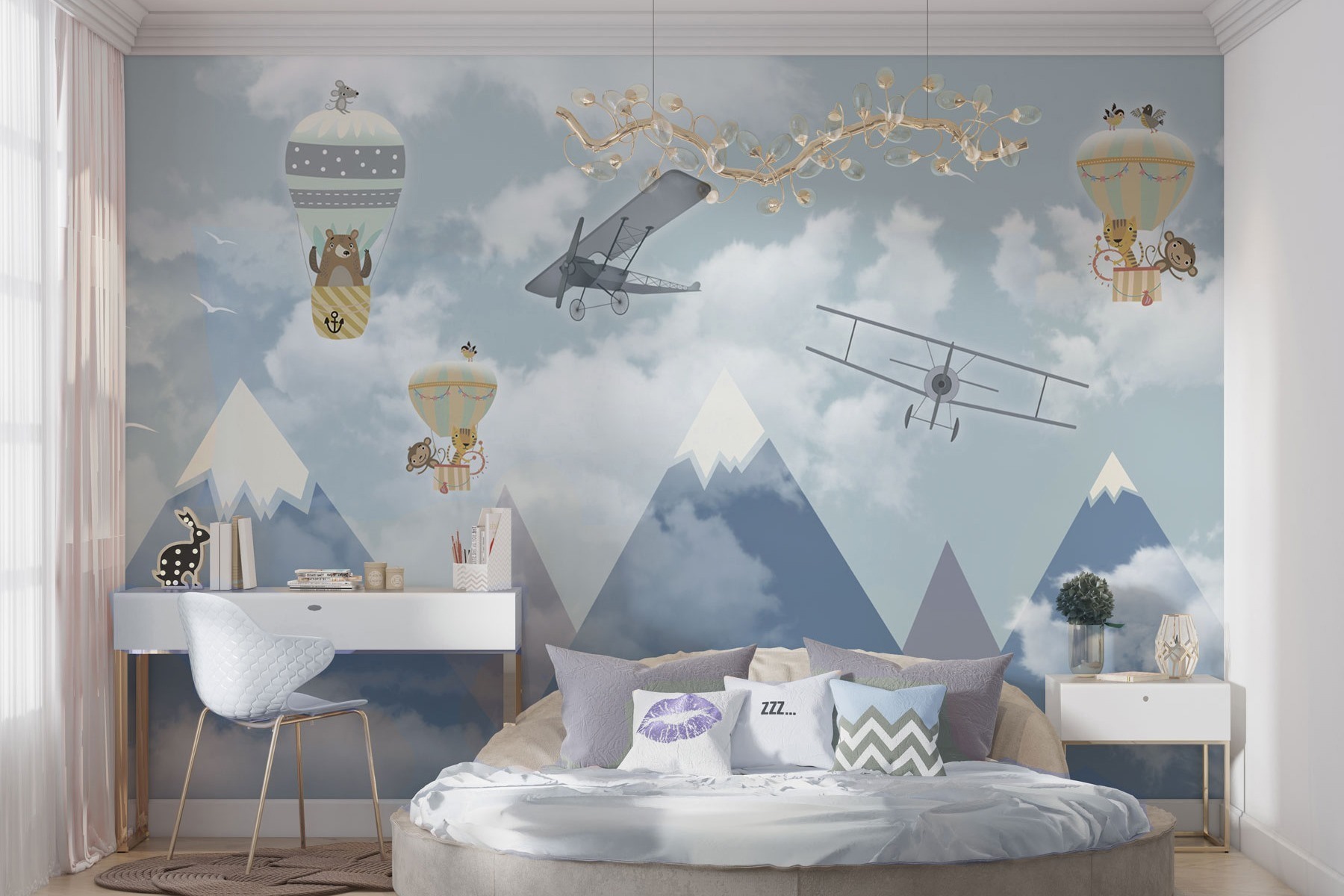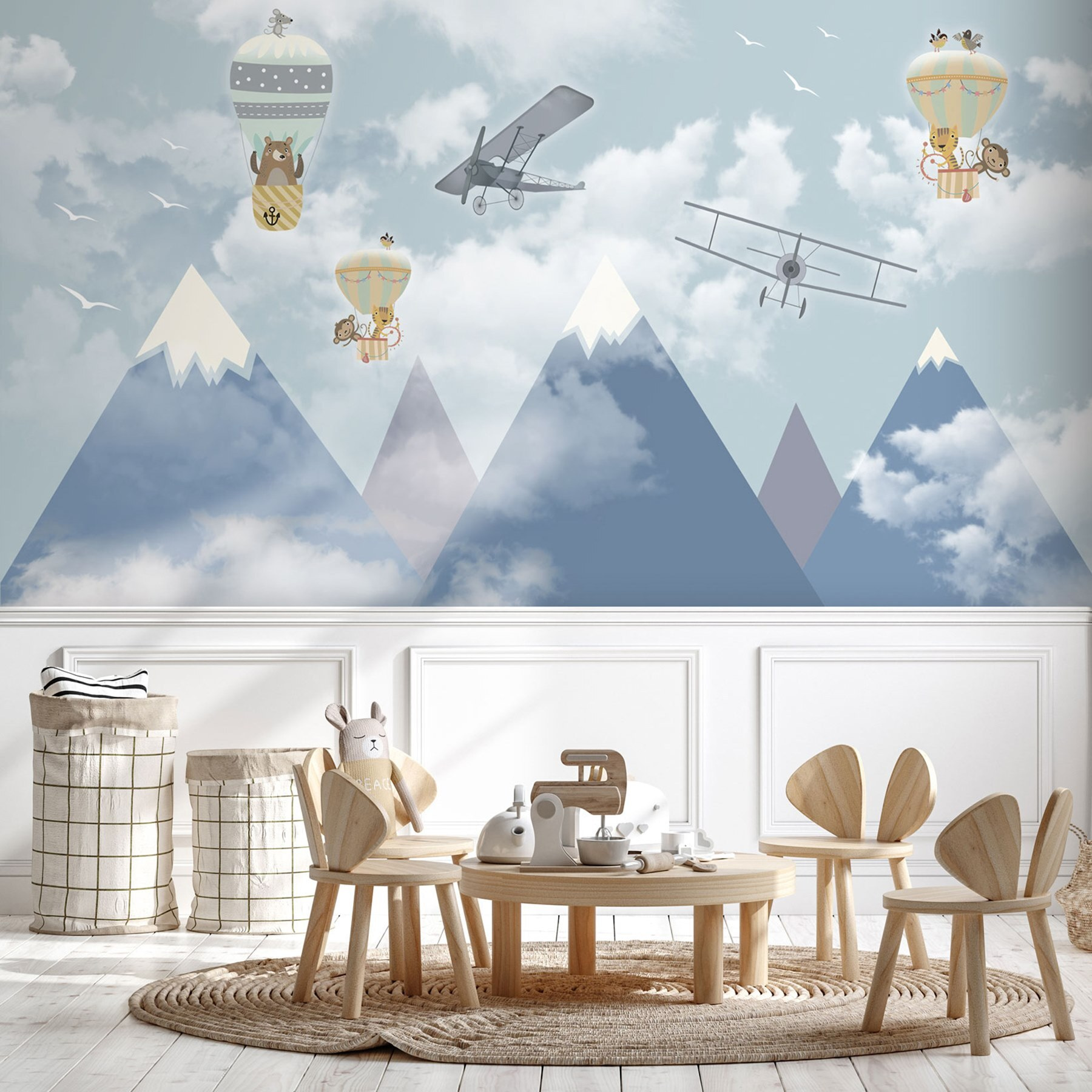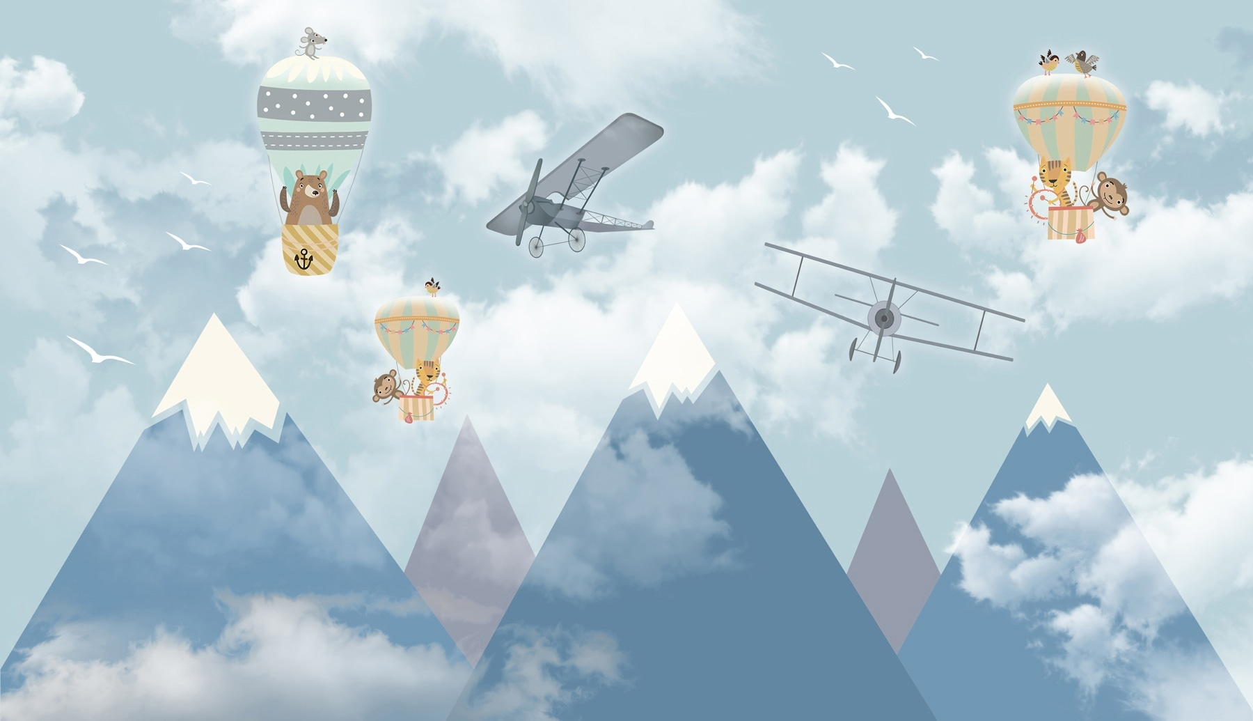 Táto rozkošná fototapeta s rozmarnou skupinou teplovzdušných balónov a hravých lietadiel vznášajúcich sa na zasnenej oblohe vytvorí očarujúcu atmosféru v každom priestore. Predstavte si, ako sa malé deti pozerajú na svoju novú stenu a ich predstavivosť sa vznáša spolu s priateľskými medveďmi a zvedavými zvieratkami. Je to ako pozvať do svojho domova kúsok dobrodružstva! Jemná modrá a nežná biela dodávajú upokojujúci nádych, ideálny do detských izieb alebo herní. Kto by nechcel každý večer snívať o skúmaní oblohy? Je to len nástenná maľba, ale zároveň je to brána k nekonečným dobrodružstvám.