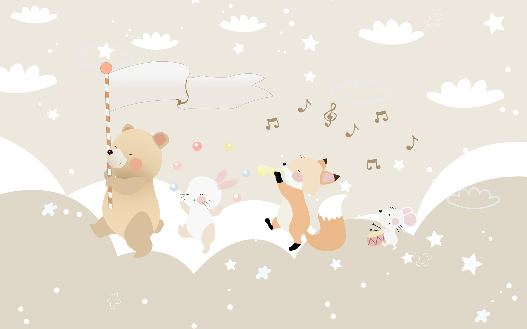 Premeňte detskú izbu na rozmarnú krajinu zázrakov s touto rozkošnou nástennou maľbou s veselým medvedíkom a jeho veselou partiou lesných kamarátov. Predstavte si, ako sa deti budia do hravej scény, v ktorej medvedík máva cukrovou trstinou ako vlajkou a pozýva do snov plných sladkostí a zábavy. Vedľa tancuje líška a poskakuje zajačik; je to ako malá paráda priamo na stene! Jemné farby a radostné výrazy vytvárajú upokojujúcu atmosféru, podnecujú predstavivosť a smiech. Ideálny do detských izieb alebo detských izieb, je to druh dekorácie, ktorá mení každodenné okamihy na dobrodružstvo – kto vie, aké príbehy sa tu odohrajú? Jednoduchý dotyk, ktorý má veľký vplyv!