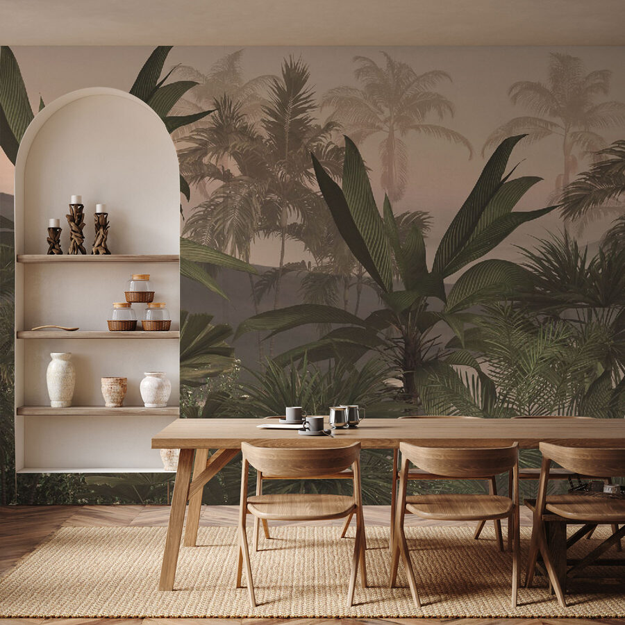 Jemné, hmlisté pozadie zmiešané so žiarivo zelenými listami dodá každému priestoru pocit života a sviežosti. Či už je to obývacia izba, spálňa, alebo dokonca kancelária, budete sa vďaka nej cítiť ako na neustálom úteku. A čo je na tom najlepšie? Žiadne chrobáky! Len nekonečný pokoj a nádych exotického kúzla priamo na vašich stenách.
