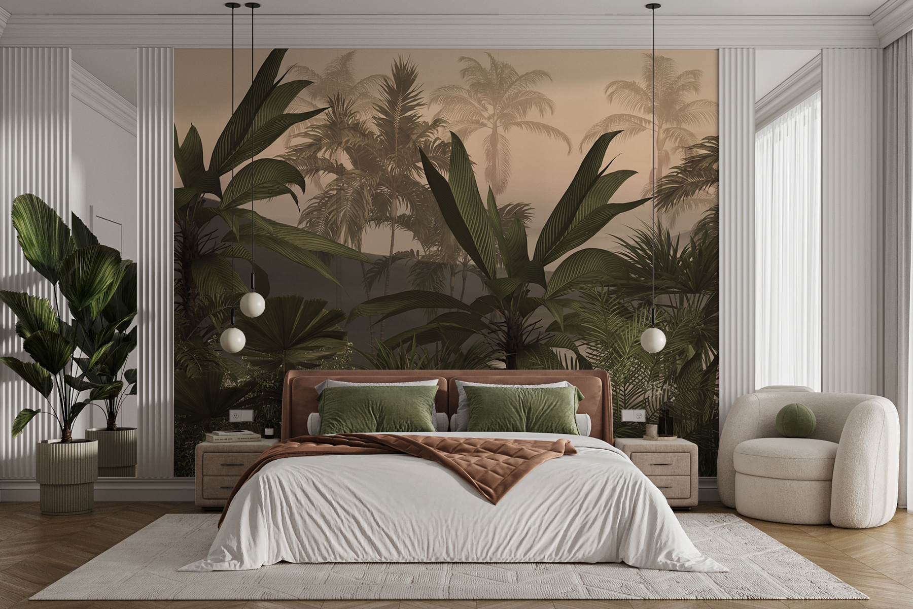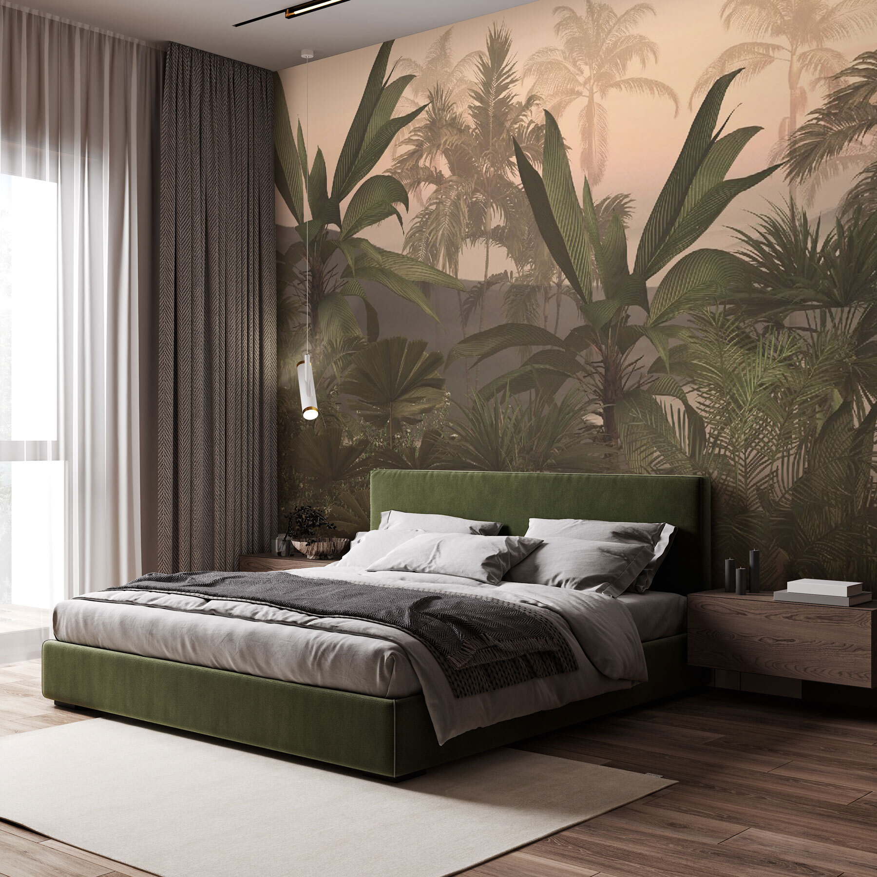 Jemné, hmlisté pozadie zmiešané so žiarivo zelenými listami dodá každému priestoru pocit života a sviežosti. Či už je to obývacia izba, spálňa, alebo dokonca kancelária, budete sa vďaka nej cítiť ako na neustálom úteku. A čo je na tom najlepšie? Žiadne chrobáky! Len nekonečný pokoj a nádych exotického kúzla priamo na vašich stenách.
