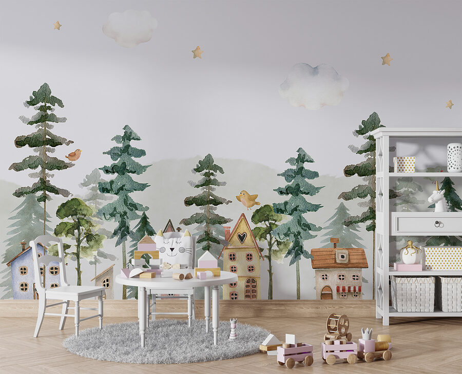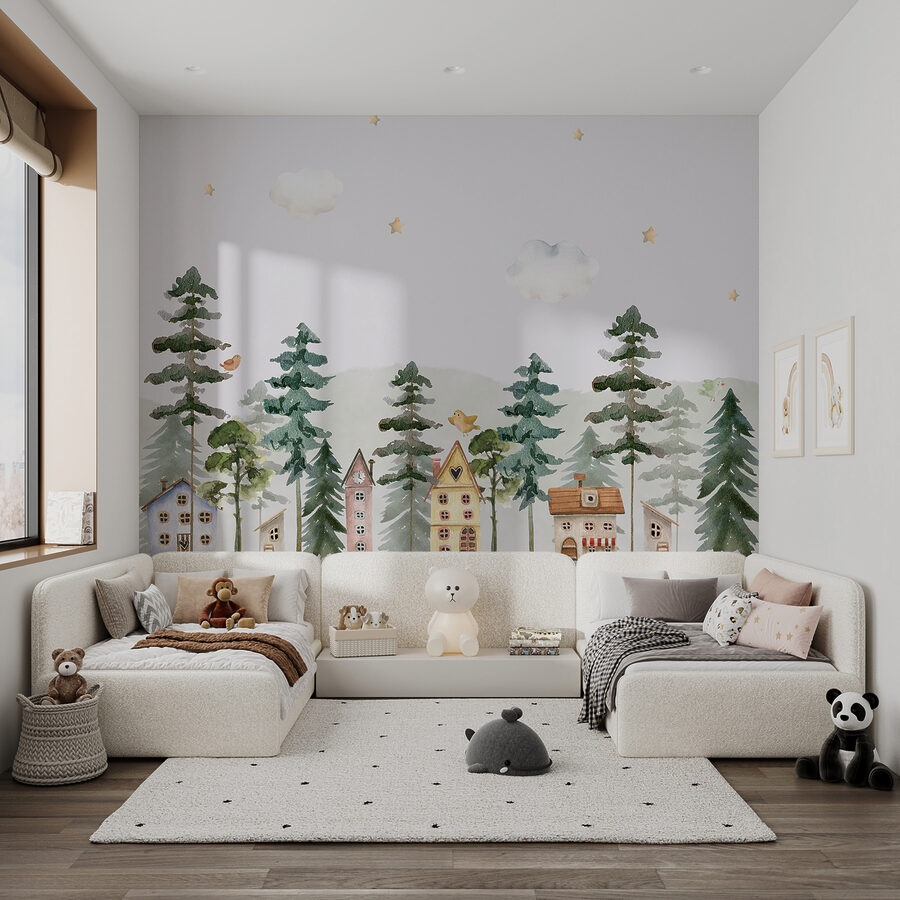 Ach, to kúzlo akvarelu a teplo útulného domu! Táto nástenná maľba “Akvarel domu” okamžite premení akýkoľvek priestor na rozmarné útočisko. Predstavte si, že vojdete do miestnosti, kde uprostred bujných stromov vykúkajú drobné maľované domčeky, nad ktorými plávajú jemné obláčiky a hviezdy – je to malý rozprávkový svet na vašej stene! Perfektne sa hodí do detských izieb alebo do detských izieb a dodáva im upokojujúcu, zasnenú atmosféru. Zložité detaily, ako sú okná v tvare srdca a vtáčiky sediace na stromoch, nabádajú k nekonečnej hre plnej fantázie. Aj počas nepokojnej noci je ako jemná pripomienka pokoja a kúziel. Ľahká na pohľad a plná charakteru – táto nástenná maľba sa vo vašom domove cíti ako starý priateľ.