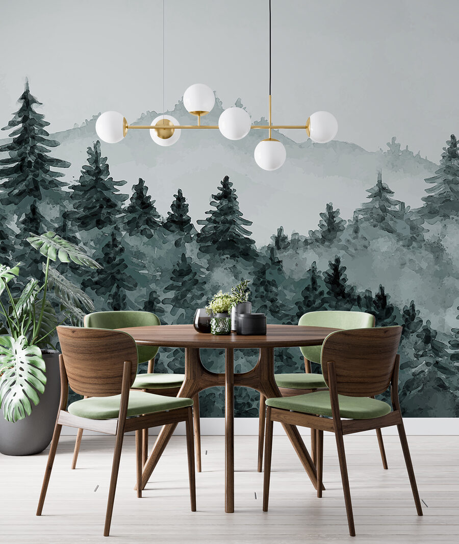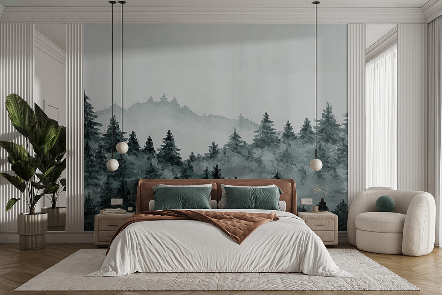 Predstavte si, že vojdete do svojej obývačky a BUM!- zrazu stojíte v pokojnom, hmlistom lese. Táto nástenná maľba “Mlžný les so stále zelenými stromami” akoby preniesla pokojnú lesnú krajinu priamo na vaše steny. Ideálna pre chvíle, keď chcete uniknúť pred zhonom bez toho, aby ste museli opustiť svoj útulný priestor. Má zasnenú akvarelovú atmosféru, ktorá je mimoriadne upokojujúca. Predstavte si svoju rannú kávu s touto hmlistou scenériou – je to ako mini útočisko! Táto nástenná maľba je ideálna pre akýkoľvek priestor, ktorý potrebuje dotyk kúzla prírody, a jej atmosféra je o pokoji a pohode.