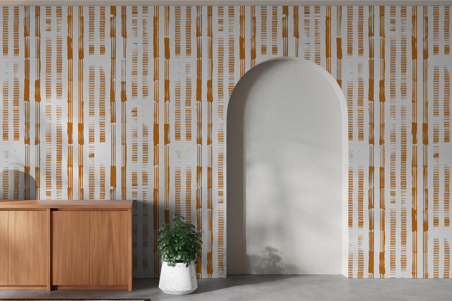 Pozrite si túto pútavú nástennú maľbu so zvislým pruhovaným vzorom a zámernými medzerami – ideálna na dodanie trochu modernej atmosféry do vášho priestoru! Nachádza sa na pomedzí abstraktných a pruhovaných vzorov, čo z nej robí výnimočnú voľbu pre každého, kto chce niečo jedinečné, ale zároveň univerzálne. Predstavte si ho vo svojej obývačke alebo kancelárii: čisté línie a usporiadaný vzor sú hravé a zároveň sofistikované. Navyše, zemité oranžové tóny prinášajú teplý, útulný pocit, ktorý je tak lákavý.