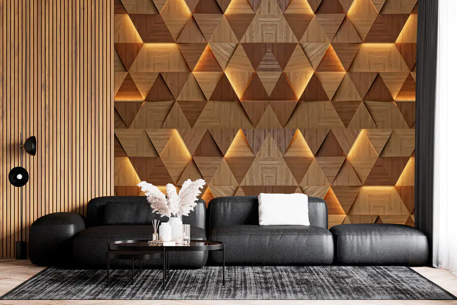 Premeňte svoj priestor pomocou tejto podmanivej nástennej maľby, ktorá sa hrá so svetlom a drevom v fascinujúcom trojuholníkovom dizajne. Predstavte si, že vstúpite do miestnosti, ktorá pôsobí hrejivo a zároveň prívetivo, kde geometrické tvary tancujú po stenách. Je to, akoby ste do interiéru preniesli vonkajší svet s tým správnym nádychom moderného štýlu. Táto nástenná maľba nie je len dekoráciou na stenu, ale aj podnetom na rozhovor. Predstavte si hostí, ako obdivujú jedinečnú atmosféru, ktorú dodáva. Či už ide o útulný čitateľský kútik alebo štýlovú obývačku, bez námahy pozdvihne atmosféru. Navyše, kto by nemal rád na stenách trochu pastvy pre oči?