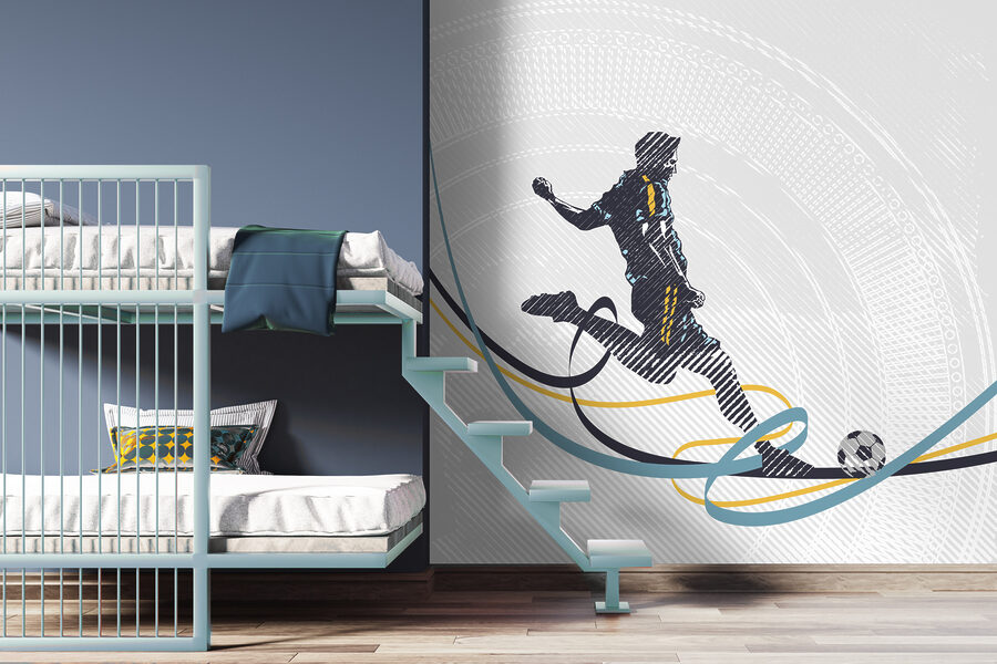 Zmes abstraktných línií a žiarivých farieb mu dodáva chladnú, modernú atmosféru, ktorá je však stále teplá a prívetivá. Je to ako navždy zachytiť dokonalý športový moment. A hej, nemusíte sa báť, že by ste pri dekorovaní skórovali – táto nástenná maľba vás určite dostane do vedenia! Farebné škvrny všetko rozžiaria. Ideálna pre každého futbalového fanúšika alebo niekoho, kto jednoducho miluje dobré akčné zábery.