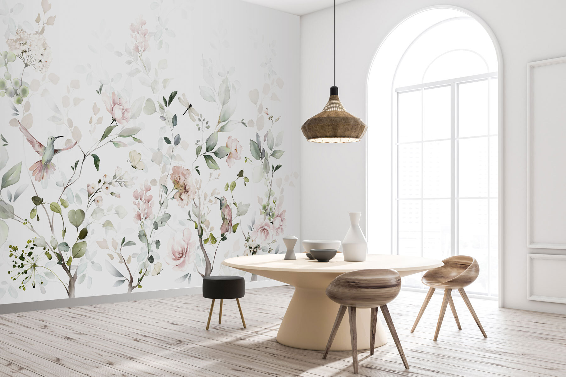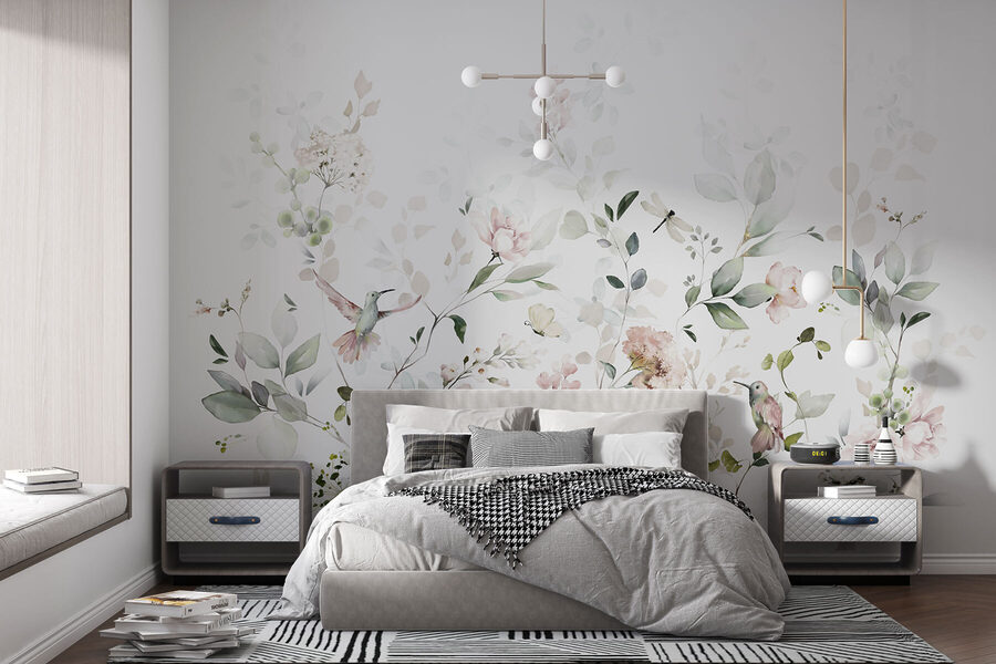 Predstavte si to: popíjate rannú kávu, vyhrievate sa v jemnom slnečnom svetle prúdiacom cez okno – a teraz sa obklopte touto úžasnou nástennou maľbou “Kolibríky medzi jemnými kvetinovými vzormi”. Je to ako vstúpiť do rozmarnej záhrady priamo vo vašej obývačke! Tieto vtáčiky so svojím žiarivým perím a drobnými trepotajúcimi sa krídlami vnesú do každého priestoru pocit radosti a pokoja. Jemné, pastelové kvety a svieže zelené lístie v sebe skrývajú tiché kúzlo, takmer akoby šepkali tajomstvá prírody. Ideálne pre každého, kto miluje prírodu, krásu a trochu rozmarnosti vo svojom interiéri. Táto nástenná maľba premení váš priestor na pokojnú, vzdušnú oázu, kde môžete uniknúť pred zhonom každodenného života. Krásna zmes pokoja a krásy – je to prakticky ako terapia, na vašej stene.