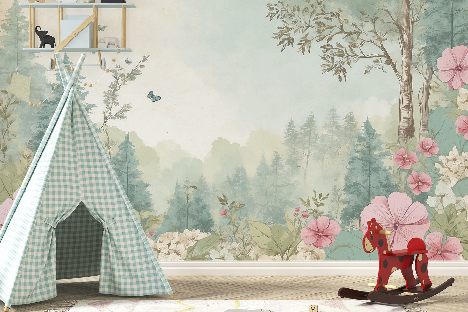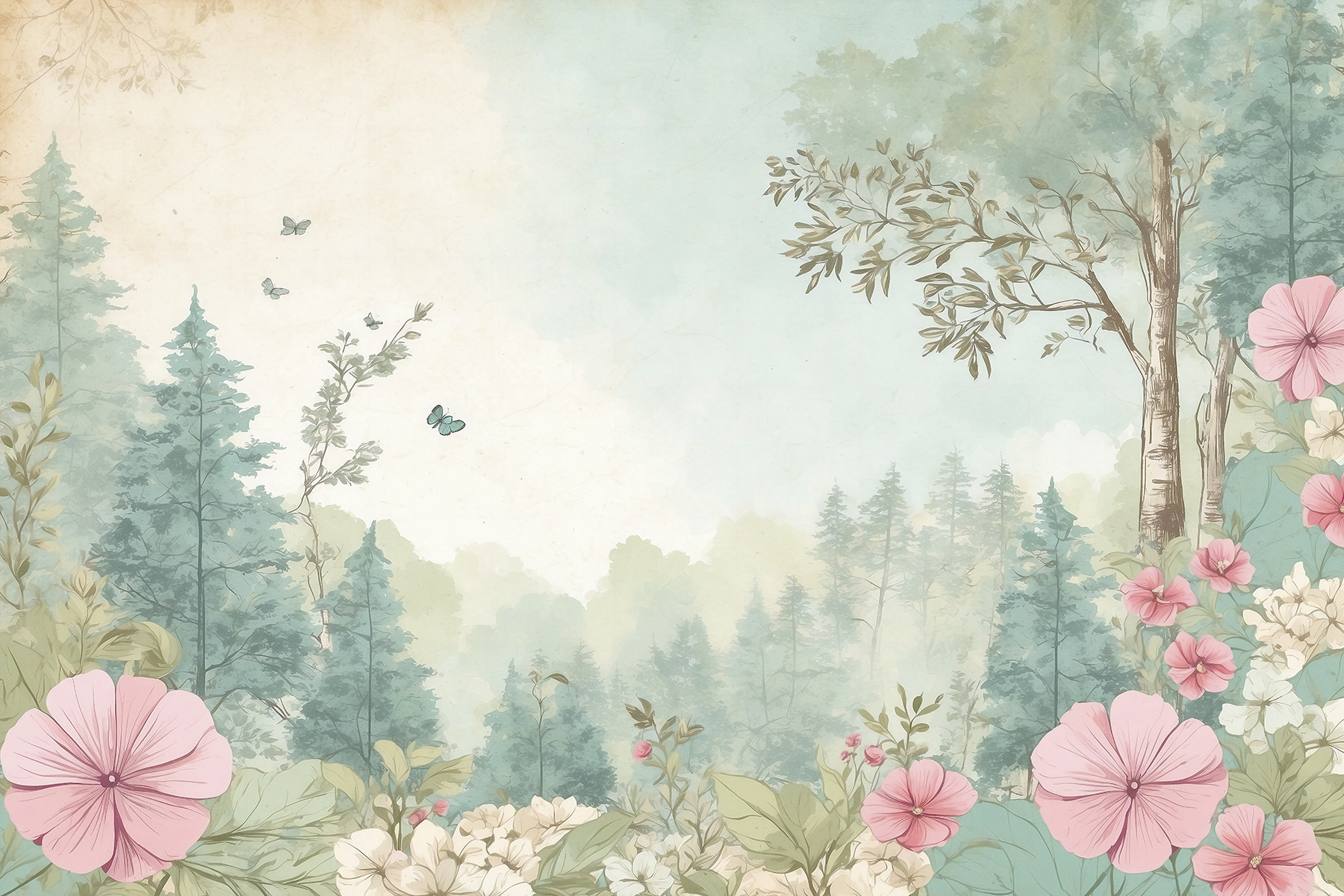 Predstavte si, že vojdete do svojej izby a privíta vás táto úžasná nástenná maľba – “Motýle poletujú v pokojnej krajine”. Jemné motýle a mäkké pastelové kvety vás prenesú priamo na zasnenú lúku. Tie jemné zelené a ružové? Je to ako mať na stenách kúsok rozprávkovej záhrady. Vážne, táto scéna inšpirovaná prírodou prináša takú upokojujúcu atmosféru, ktorá je ideálna na uvoľnenie po náročnom dni. Navyše, kto by odolal tým drobným poletujúcim kamarátom? Nie je to len dekorácia, je to mini únik priamo u vás doma.