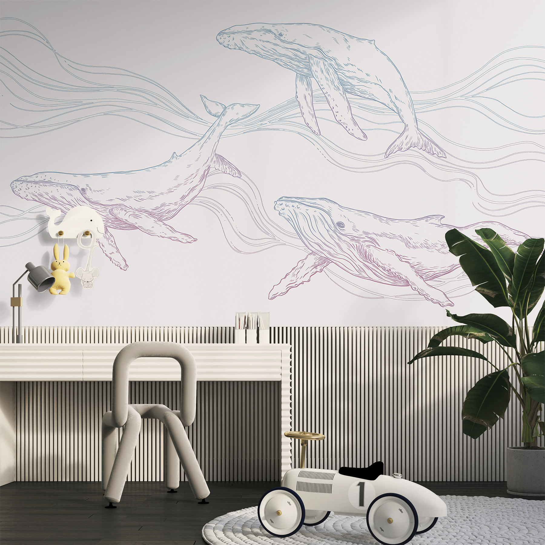 Premeňte akúkoľvek miestnosť na únik z oceánu pomocou tejto úžasnej nástennej maľby so skupinou veľrýb ladne plávajúcich vo vode. Predstavte si, že sa prebúdzate s jemnou, upokojujúcou prítomnosťou týchto majestátnych tvorov, z ktorých každý pripomína krásu modrých hlbín. Jemné, plynulé línie a pastelové tóny vytvárajú pokojnú atmosféru – ideálnu do útulnej obývačky alebo upokojujúceho útočiska v spálni. Je to ako mať kúsok mora priamo doma. Priatelia budú obdivovať toto umenie a kto by sa necítil trochu uvoľnenejšie obklopený prírodnými velikánmi? Ponorte sa do sveta, ktorý prináša zázraky oceánu do vášho každodenného života.