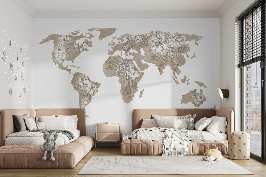 Máte doma malého svetobežníka alebo len milujete jedinečné dekorácie? Pozrite si túto nástennú maľbu “Mapa sveta”. Nie je to typická mapa – myslíte si, že Zem sa stretáva s kvetinovým umením! Predstavte si, ako vaše deti snívajú o dobrodružstvách po celom svete, zatiaľ čo sa pozerajú na túto krásu na stene. Výrazné botanické detaily sú zobrazené priamo na kontinentoch, takže geografia vyzerá ako umelecká galéria. Perfektne sa hodí do detskej izby alebo do akéhokoľvek priestoru, kde sa stretáva nádych prírody s túlavosťou. Vážne, je to pútač očí a podnet na konverzáciu v jednom. Perfektný na vzbudenie zvedavosti alebo na prejavenie lásky k svetu tým najelegantnejším, umeleckým spôsobom!