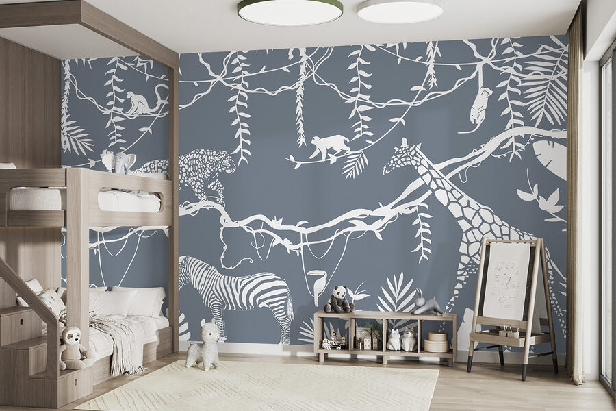 Pre tých, ktorí majú dobrodružného ducha, alebo pre deti s láskou k zvieratám je táto nástenná maľba ako stvorená. Predstavte si, ako sa prebúdzate a vidíte roztopašné opice hojdajúce sa na lianách alebo majestátne leopardy, ktoré sa preháňajú po okolí. Je to ako snové safari bez letu a prachu. Ideálne na rozprúdenie predstavivosti a dodanie tejto miestnosti štipku divokého šarmu.
