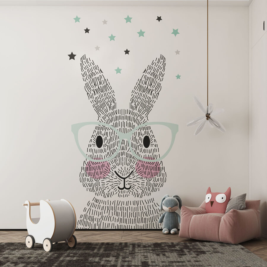 Jednoduché línie zajačika pôsobia pôvabným, domácim dojmom, zatiaľ čo pastelové hviezdičky dodávajú kúzlo. Perfektne sa hodí na to, aby ste na steny vniesli kvapku osobnosti. Možno sa s ním budete usmievať častejšie. Táto nástenná maľba je ideálna pre milovníkov zvierat a všetkých, ktorí oceňujú trochu rozmarnosti vo svojom interiéri, a určite sa stane začiatkom konverzácie. Kto by povedal, že zajačik môže byť taký elegantný?