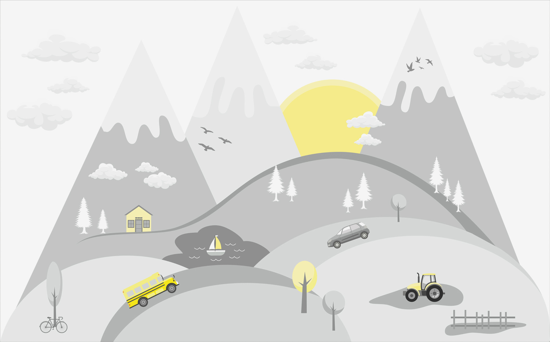 Napadlo vám niekedy, že žltý školský autobus môže dodať miestnosti toľko šarmu? Táto nádherná nástenná maľba predstavuje veselý žltý autobus s klasickými čiernymi pruhmi, ktorý sa rúti po malebnej trase, ktorá je takmer príliš dokonalá. Predstavte si, ako by to mohlo rozžiariť detskú izbu – okamžite ich to prenesie do rozmarného sveta dobrodružstva a zábavy! Pozadie hôr, stromov a hravých obláčikov dodáva upokojujúci nádych, takže je ideálny aj do detských izieb. Je to druh nástenného umenia, vďaka ktorému bude čas rozprávok alebo hier oveľa čarovnejší. Zaveste ho a sledujte, ako sa ich fantázia chopí kormidla!