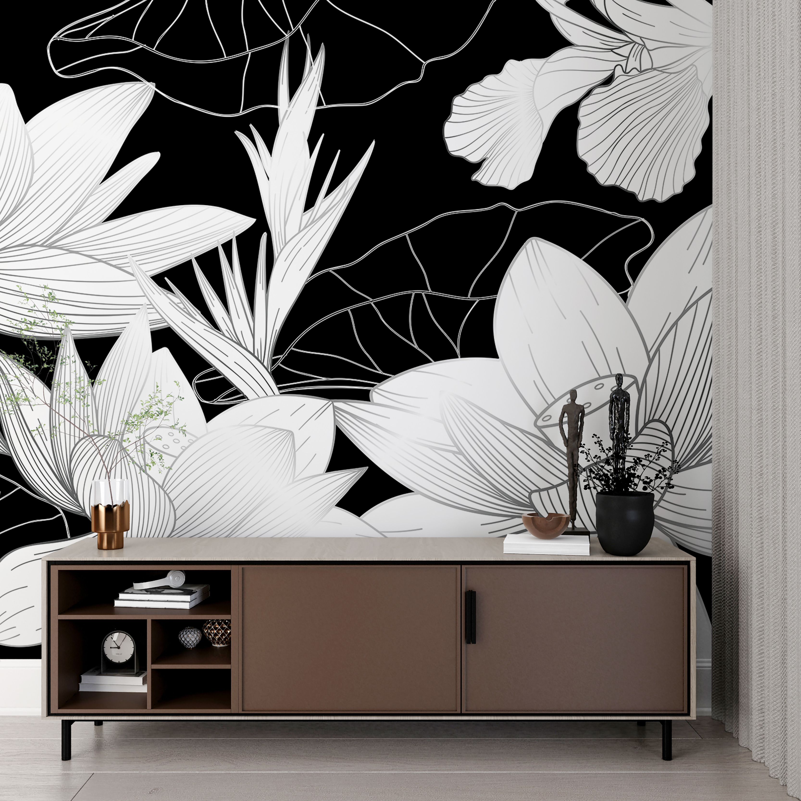 Predstavte si toto: sedíte vo svojej izbe, ale ešte sa necítite ako “vy”. Možno potrebuje posledný dotyk, aby sa cítila výnimočne. Vstúpte do elegantnej čiernobielej kvetinovej fototapety – úžasného obkladu na stenu, ktorý dodá každému priestoru sofistikovanosť a štýl. Veď sa len pozrite na tie kvety! Nie sú to len obyčajné kvety, ale majú umelecký nádych, ktorý hovorí: “Táto miestnosť? Je to niečo iné.”