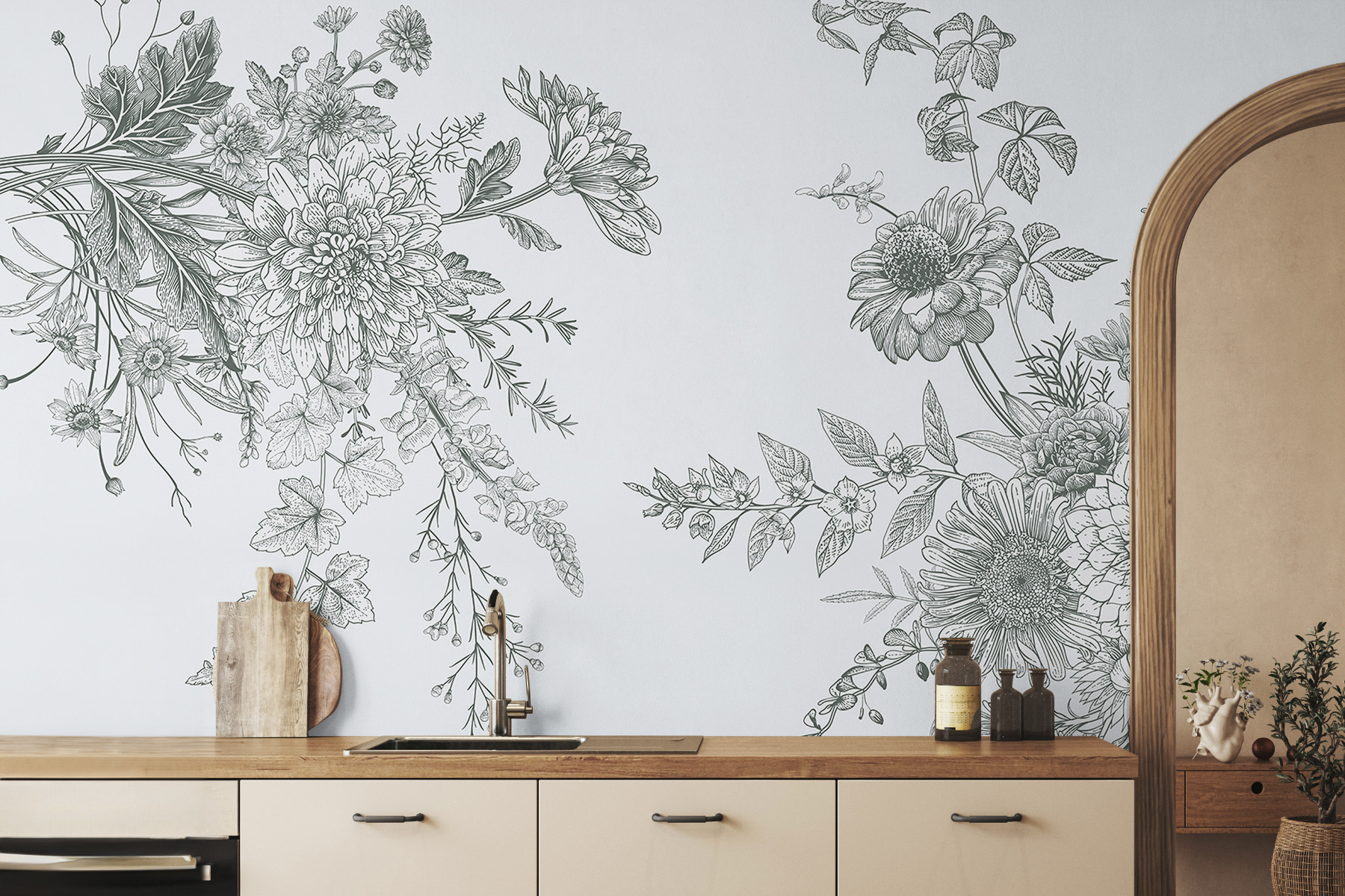 Táto nástenná maľba nie je len peknou tvárou – dodá vášmu priestoru charakter a upokojujúcu atmosféru. Predstavte si, že sa schúlite s knihou pod prikrývkou z nakresleného lístia a každý kvet rozpráva svoj príbeh. Je to ako priniesť kúsok vonkajšieho sveta dovnútra. Dostatočne všestranný na vyzdobenie obývačky alebo vytvorenie pokojného útočiska v spálni.