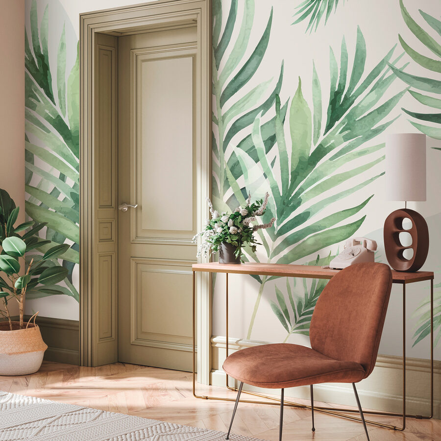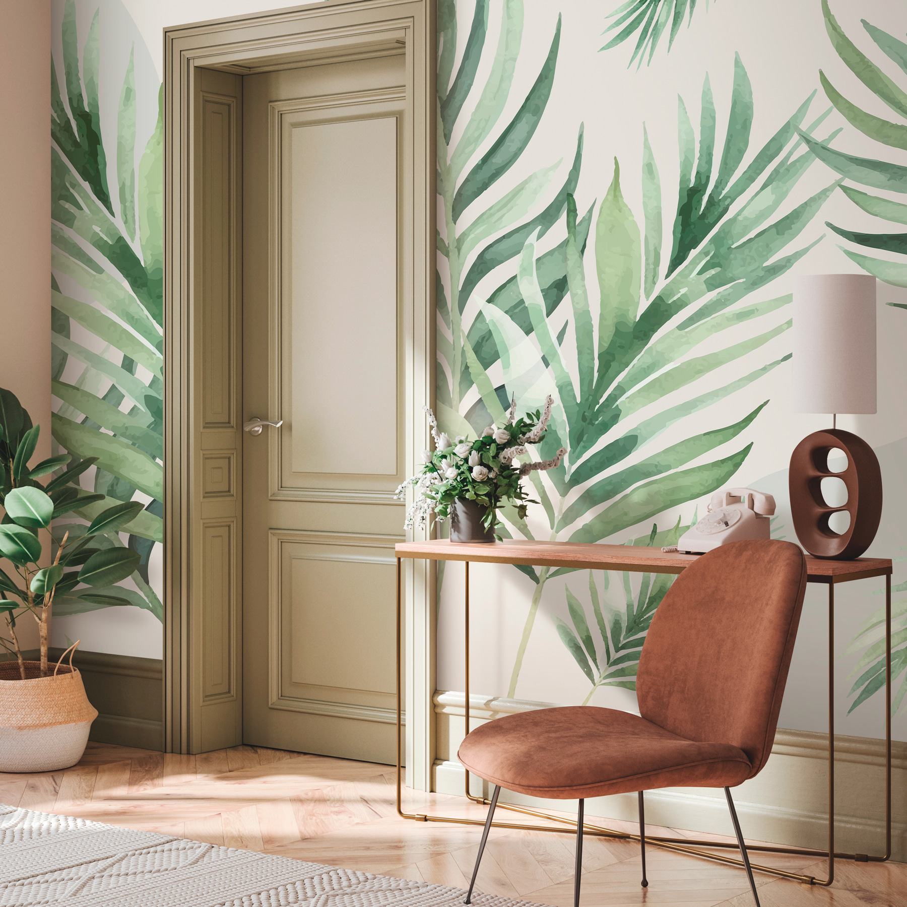 Premeňte akýkoľvek priestor na tropické útočisko pomocou tejto očarujúcej nástennej maľby s jemnými akvarelovými listami. Predstavte si, ako sa každé ráno prebúdzate a na stenách vám tancujú jemné hojdanie palmových listov, akoby ste boli na dovolenke v pokojnom prímorskom letovisku. Jemná zeleň nabáda k pocitu pokoja a bez námahy rozžiari váš domov – opaľovací krém nie je potrebný! Predstavte si útulný čitateľský kútik, kde popíjate kávu pri pohľade na túto sviežu scenériu. Je to ako preniesť kúsok džungle do interiéru, bez komárov. Ideálne pre tých, ktorí túžia po prírode, ale zároveň radi zostávajú doma.