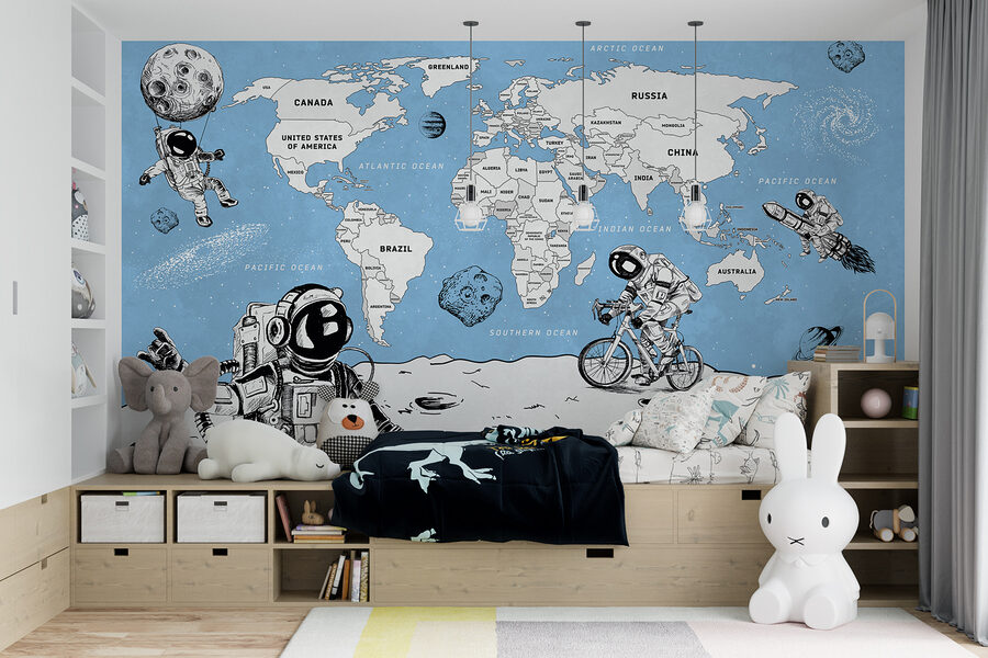Predstavte si, že táto fototapeta rozžiari vašu izbu – je to ako vstúpiť do úplne nového sveta! Máte tu kresbu astronauta, ktorý šliape na bicykli priamo na Mesiaci, pričom v pozadí sa jemne vznáša Zem. Je to nepredvídateľné, živé a trochu magické. Ideálna pre deti, alebo hej, pre každého, kto je v srdci stále dieťaťom.