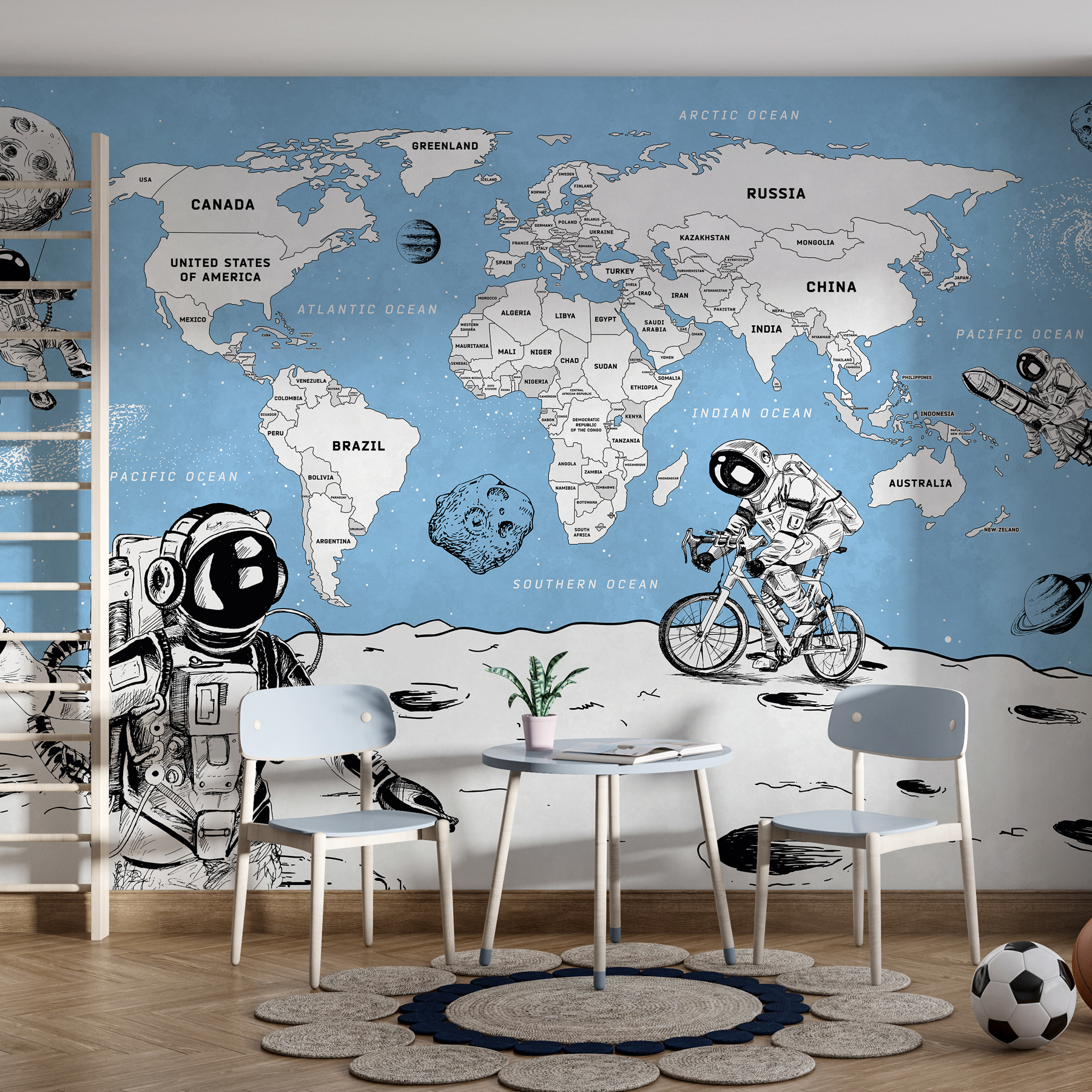 Predstavte si, že táto fototapeta rozžiari vašu izbu – je to ako vstúpiť do úplne nového sveta! Máte tu kresbu astronauta, ktorý šliape na bicykli priamo na Mesiaci, pričom v pozadí sa jemne vznáša Zem. Je to nepredvídateľné, živé a trochu magické. Ideálna pre deti, alebo hej, pre každého, kto je v srdci stále dieťaťom.