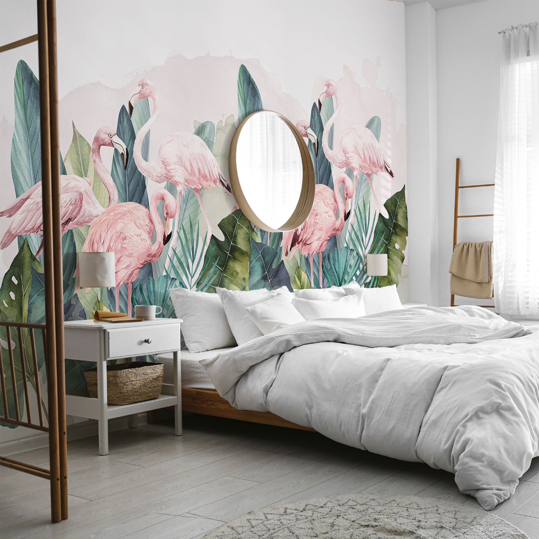 Predstavte si, že sa prebúdzate do živého raja plameniakov priamo na svojej stene! Táto nástenná maľba s príznačným názvom “Skupina ružových plameniakov a listov” spája jemné, ružové odtiene plameniakov so sviežou zeleňou – ideálna na dodanie kvapky tropickej atmosféry akémukoľvek priestoru. Či už chcete premeniť nevýrazný roh miestnosti na živé útočisko, alebo oživiť obývaciu izbu exotickými vibráciami, táto nástenná maľba vám pomôže. Tie ružové farby jednoducho vyniknú, však? Akoby boli títo plameniaci pripravení kedykoľvek sa vyšantiť. Predstavte si svoje ráno: káva v ruke a vychutnávanie si pokojnej a zároveň veselej atmosféry, ktorú tieto plameniaky prinášajú. Šepkajú “len dobré vibrácie” a zanechávajú slnečný, hrejivý dojem, ktorý okamžite pozdvihne akúkoľvek miestnosť vo vašej domácnosti. Úplný zlepšovák nálady, však?