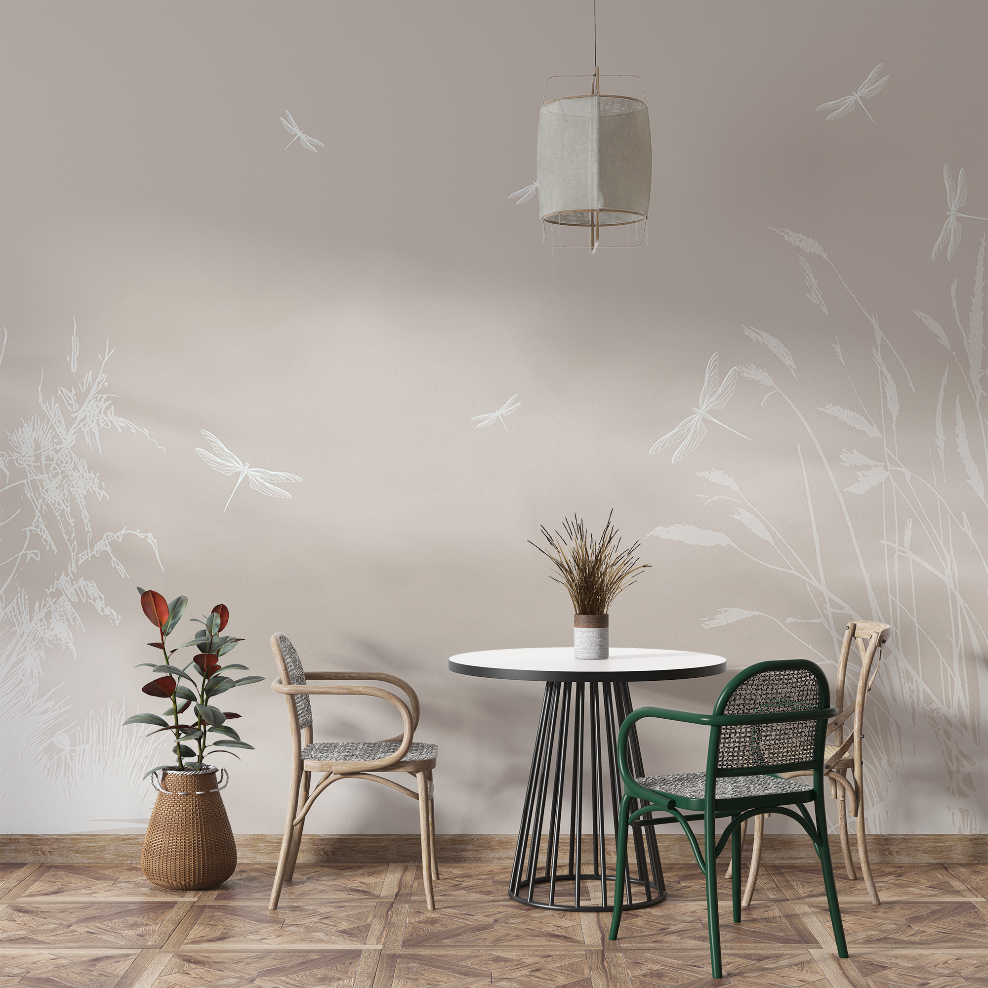 Potrebujete niečo zasnené na stenu? Pozrite si túto nástennú maľbu – na tomto jemnom, zemitom pozadí poletujú jemné biele vážky. Je to ako jemné popoludnie na poli, kde vážky tancujú v ľahkom vánku. Predstavte si, že sedíte vo svojom obľúbenom kresle, v ruke držíte šálku čaju a ste úplne zen. Má to upokojujúcu atmosféru, ktorá vás núti zhlboka sa nadýchnuť a relaxovať. Ideálny na to, aby ste svojmu priestoru dodali nádych prírody a pokoja! Verte mi, budete sa v ňom chcieť stratiť zakaždým, keď pôjdete okolo.