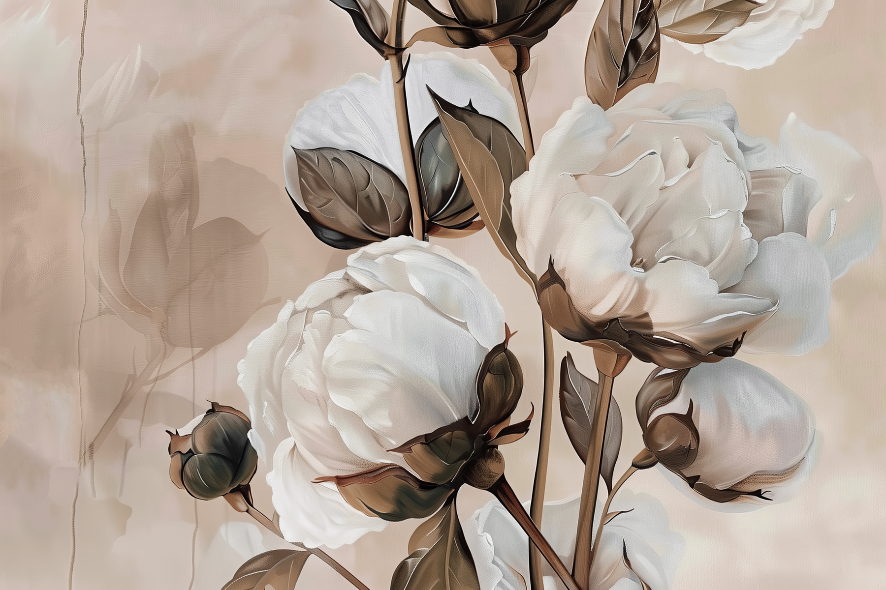 Premeňte akúkoľvek miestnosť pomocou očarujúcej nástennej maľby elegantných kvetov na jemnom pozadí. Predstavte si, že sa prebúdzate do jemnej záhradnej atmosféry priamo vo svojej obývačke. Tie svieže, plné okvetné lístky akoby vás pozývali dovnútra, vďaka čomu budete mať pocit, že jar je vo vzduchu po celý rok. Je ideálny pre priestory, ktoré túžia po troche pokoja – útulné zákutia alebo slnkom zaliate kúty. Predstavte si, ako sa obklopení týmto kvetinovým objatím chúlite do klbka s dobrou knihou alebo popíjate čaj. Nie je to len dekorácia na stenu; je to ako vstúpiť do bezstarostného popoludnia, kde sa príroda stretáva s pôvabom. Rozžiarte svoje steny a nechajte sa unášať dobrou náladou!