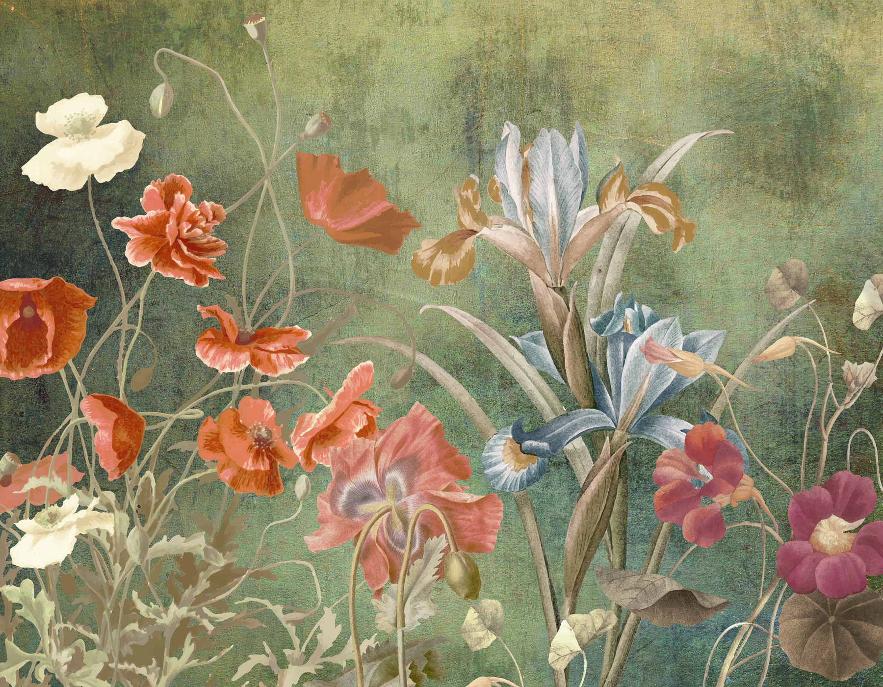 Predstavte si, že vstúpite do miestnosti a privíta vás lúka plná živých kvetov. Táto nástenná maľba s nádhernou zmesou kvetov dodá každému priestoru nádych prírody, ktorý ho oživí. Predstavte si lenivé nedeľné ráno, do ktorého prúdi slnečné svetlo a vrhá jemné tiene na tieto krásne kvety – dokonalé pozadie na popíjanie kávy alebo ponorenie sa do dobrej knihy. Jemné odtiene a rozmanité tvary vytvárajú príjemnú atmosféru, vďaka ktorej sa človek necíti o niečo ľahší a šťastnejší. Je to ako mať záhradu v interiéri bez pletia! Premeňte tieto obyčajné steny a popustite uzdu fantázii.