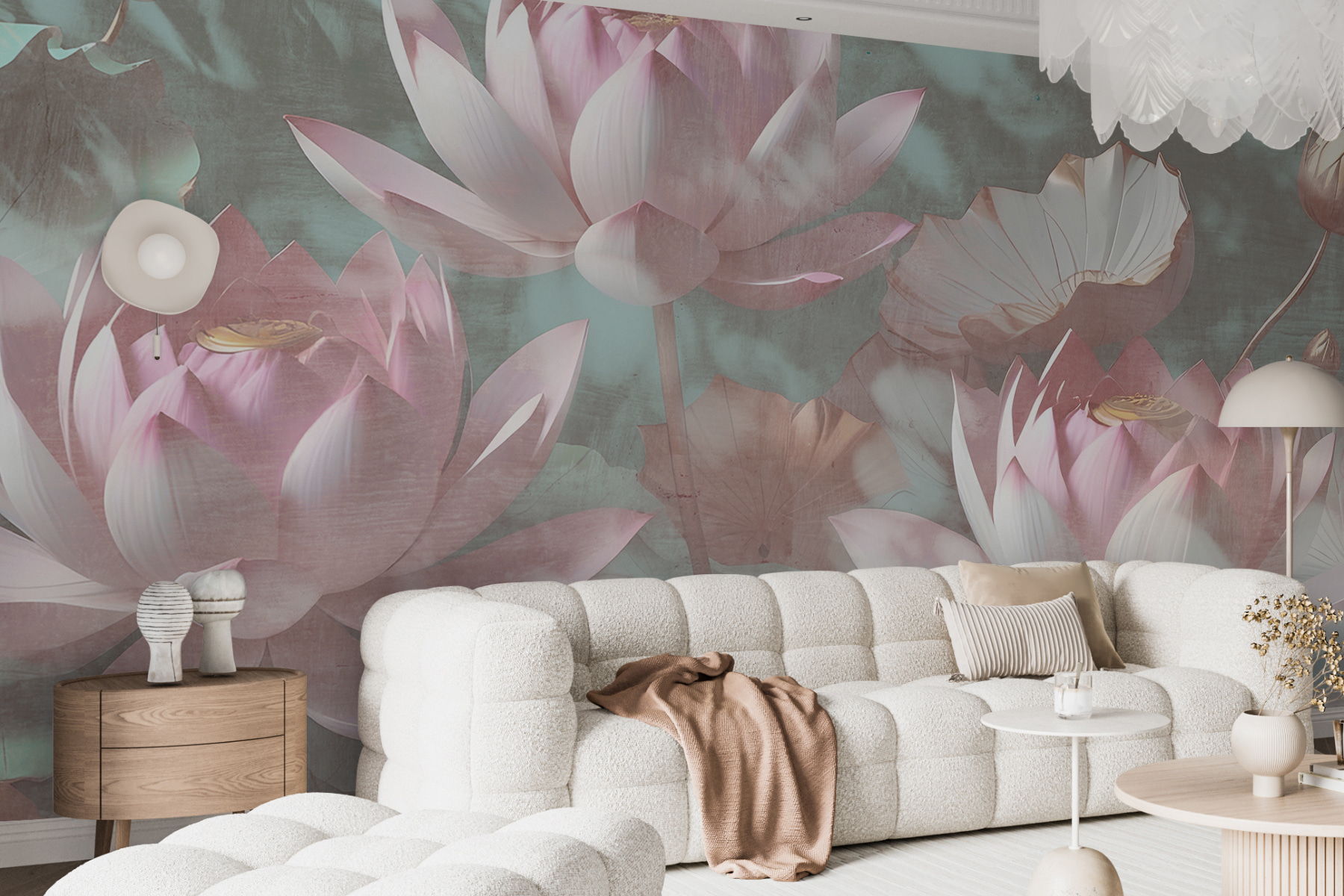 Snívali ste niekedy o tom, že do svojho priestoru vnesiete nádych zenu? Fototapeta “Pastelové lotosové kvety uprostred listov” je presne to, čo potrebujete! Predstavte si, že sa každý deň prebúdzate s týmito pokojnými pastelovými kvetmi – je to ako jemné objatie pre vašu dušu. Tieto 3D kvety sa prakticky vznášajú nad stenou a vytvárajú pokojnú oázu priamo vo vašej obývačke alebo spálni.