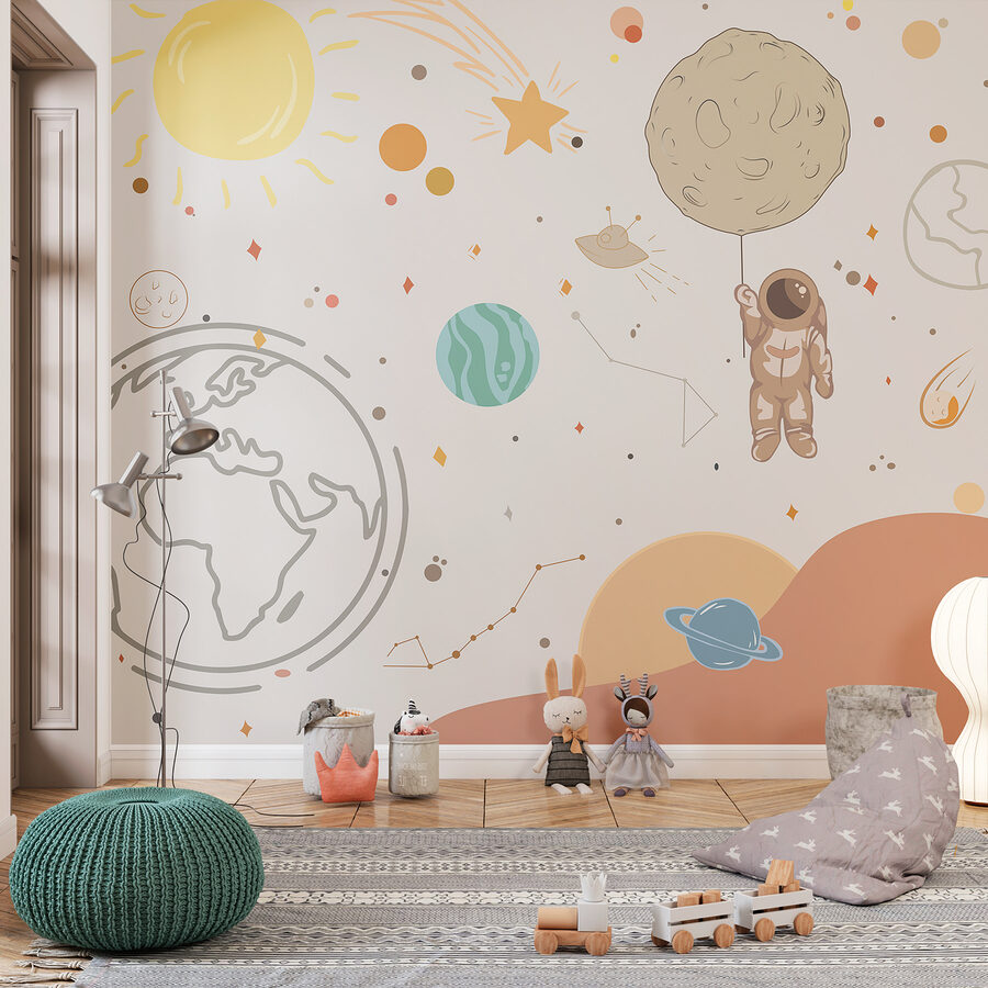 Predstavte si, že sa pozeráte na snový, rozmarný vesmír bez toho, aby ste museli opustiť obývačku. Táto “Nástenná maľba Kreslená planéta” je ideálna pre každého, kto miluje galaxiu a má slabosť pre rozkošné umenie astronautov. Dizajn je hravý a plný planét, hviezd a dokonca aj veselého malého vesmírneho cestovateľa, ktorý sa drží balóna pripomínajúceho mesiac. Perfektne sa hodí na spestrenie detskej izby alebo na dodanie kúska vesmírneho šarmu akémukoľvek priestoru. Nie je to len nástenná maľba – je to celá atmosféra. Budete mať pocit, že sa vznášate v nežnej, kreslenej galaxii.