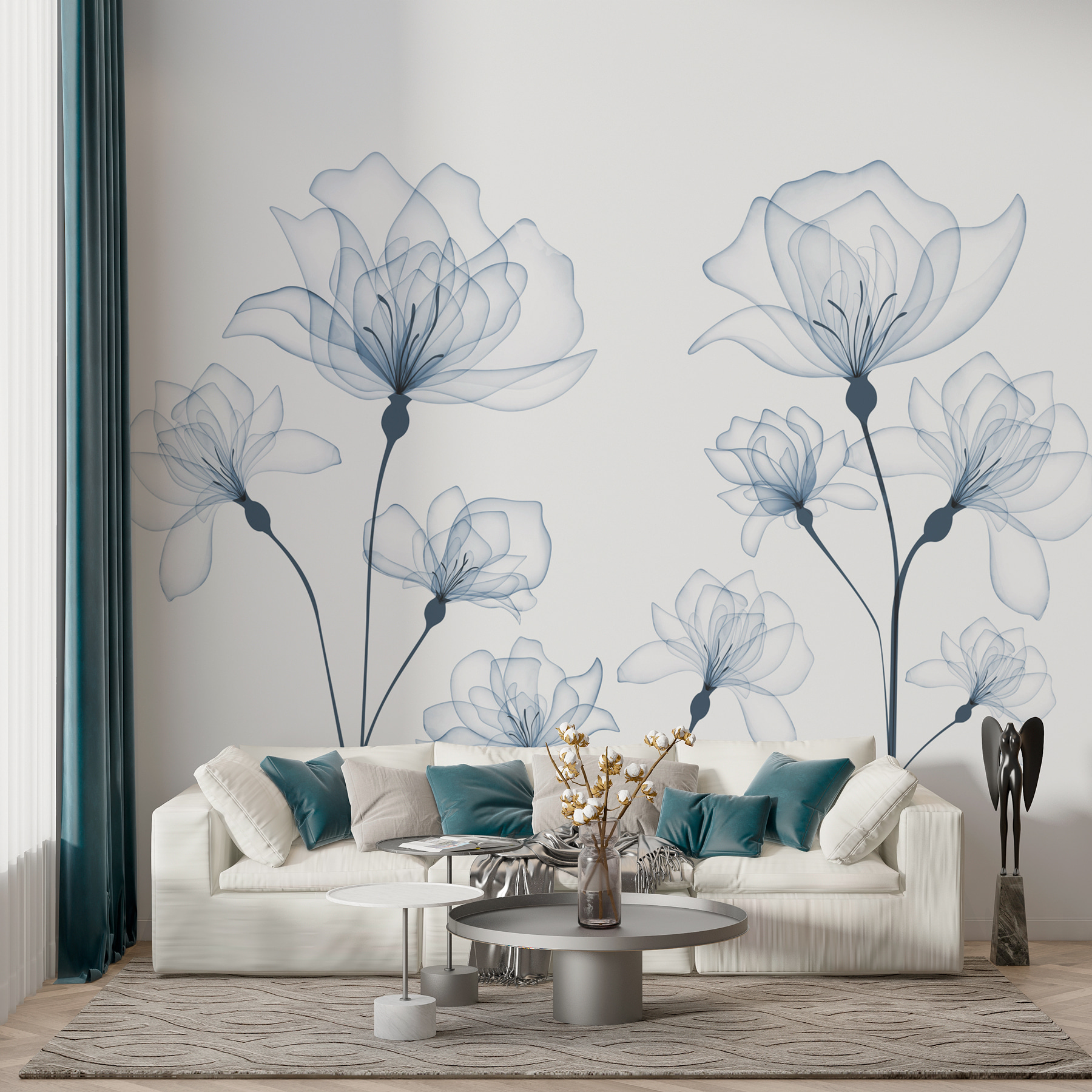 Hľadáte zábavný spôsob, ako vniesť do svojho priestoru kúsok prírody? Táto “Nástenná maľba w00744v1” môže byť presne to, čo potrebujete! Má pokojnú, takmer snovú atmosféru s jemnými, splývavými kvetmi, ktoré vyzerajú, akoby tancovali v jemnom vánku. Predstavte si to na stene – bolo by to ako mať v interiéri malú pokojnú záhradu, bez chrobákov a problémov so zalievaním!