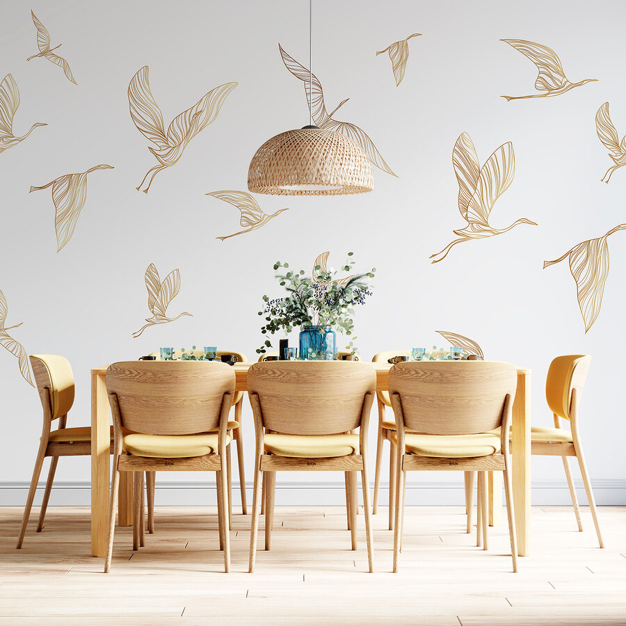 Premeňte svoj priestor pomocou tejto očarujúcej nástennej maľby s jemnými vtákmi v lete. Je to ako závan čerstvého vzduchu priamo na vašej stene! Predstavte si, ako sa každé ráno prebúdzate a nad vami plachtia ladné siluety, ktoré vám okamžite zlepšia náladu. Mäkké, plynulé línie vytvárajú v miestnosti tanec, vďaka ktorému pôsobí živo a zároveň pokojne. Predstavte si útulný kávový kútik, kde obklopení krásou prírody môžete popíjať svoj nápoj – čistá blaženosť, však? Táto nástenná maľba dodáva nádych rozmarnosti, ideálna pre každého, kto sa rád cíti prepojený s prírodou, a to aj v interiéri. Je to viac ako dekorácia, je to malý kúsok radosti pripravený rozjasniť váš deň!