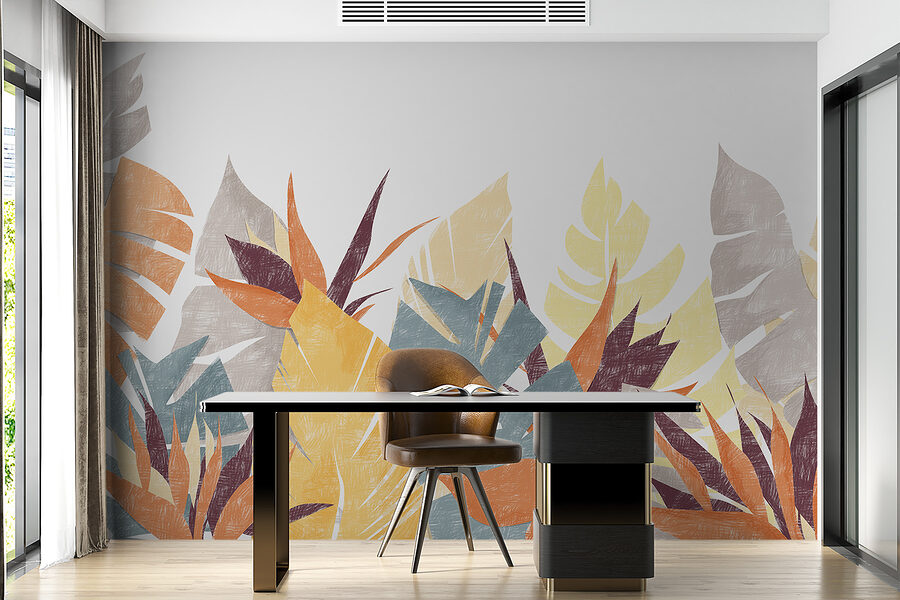 Či už máte radi prírodu, tropické vibrácie, alebo len chcete niečo oveľa viac cool ako obyčajné steny, táto nástenná maľba vás dostane. Je hravá a zároveň sofistikovaná – je to farebná spŕška bez toho, aby bola krikľavá. Navyše, na tých teplých oranžových, chladných modrých a zemitých tónoch je niečo, čo vám navodí útulný pocit. Je to ako tropický prales na plátne umelca – ideálne na to, aby ste každú miestnosť premenili z fádnej na úžasnú.