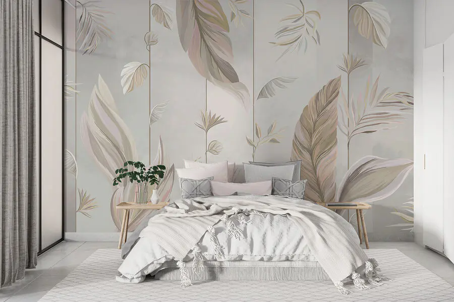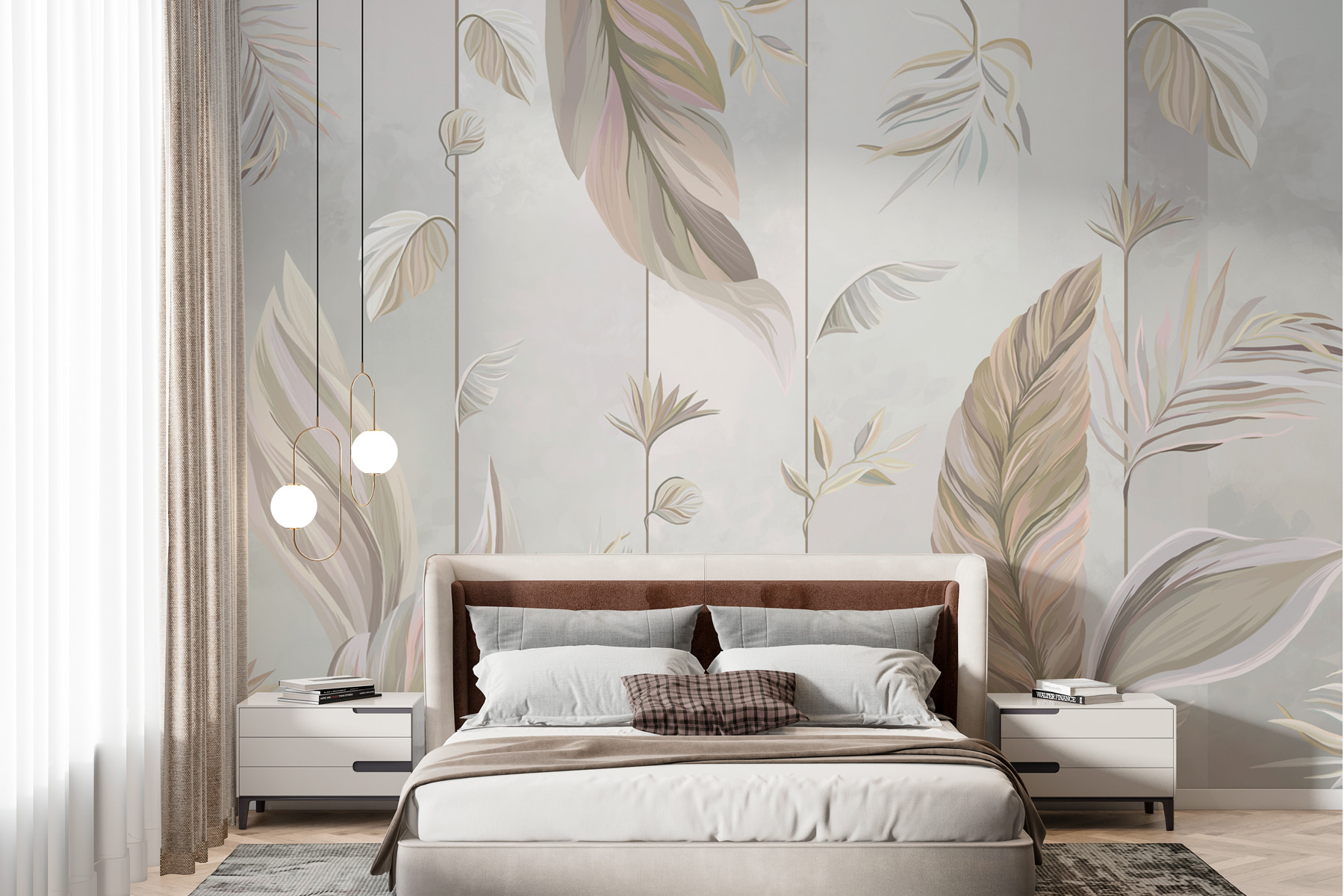 Premeňte svoj priestor pomocou nástennej maľby “Elegantné listy”! Predstavte si, že ste v pokojnej záhrade zakaždým, keď vojdete do miestnosti. Jemné pastelové odtiene sú ako jemný šepot farieb, vďaka ktorému všetko pôsobí pokojne a sviežo. Je to ten typ fototapety, pri ktorej si budete chcieť sadnúť s dobrou knihou (a možno so šálkou čaju).