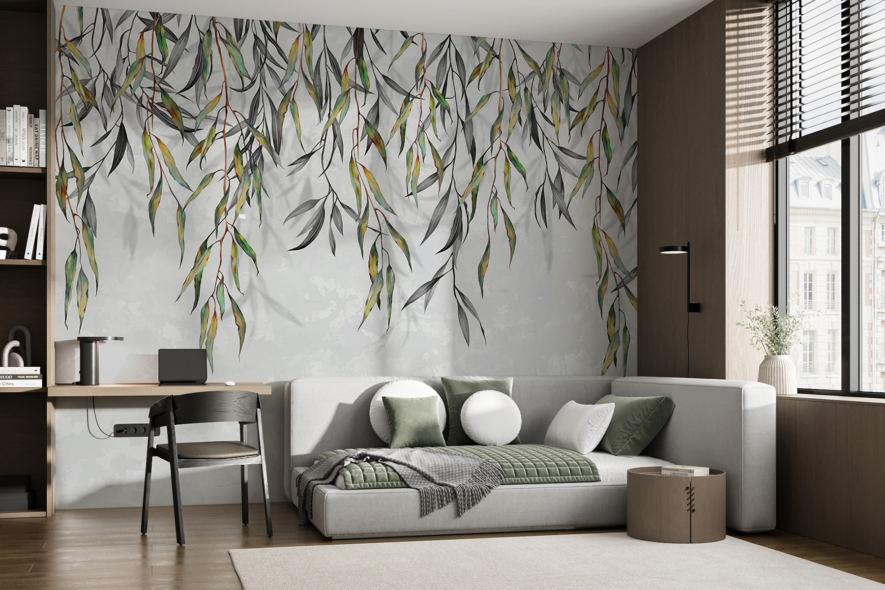 Premeňte obyčajnú stenu na pokojný únik s týmito krásnymi vŕbovými listami tancujúcimi vo vetre. Predstavte si, že vojdete do miestnosti, kde jemné kolísanie prírody prináša pokojné vibrácie – dokonalé pozadie na príjemné rozhovory alebo pokojné čítanie. Jemné farby sa nádherne prelínajú a pozývajú do interiéru teplo a nádych vonkajšieho prostredia. Je to ako mať kúsok pokojného lesa priamo vo svojom obytnom priestore. Priatelia si ho možno dokonca zamenia za dômyselný únik do vášho obľúbeného parku. S touto nástennou maľbou sa môže každý deň cítiť tak trochu ako slnečná prechádzka medzi stromami.