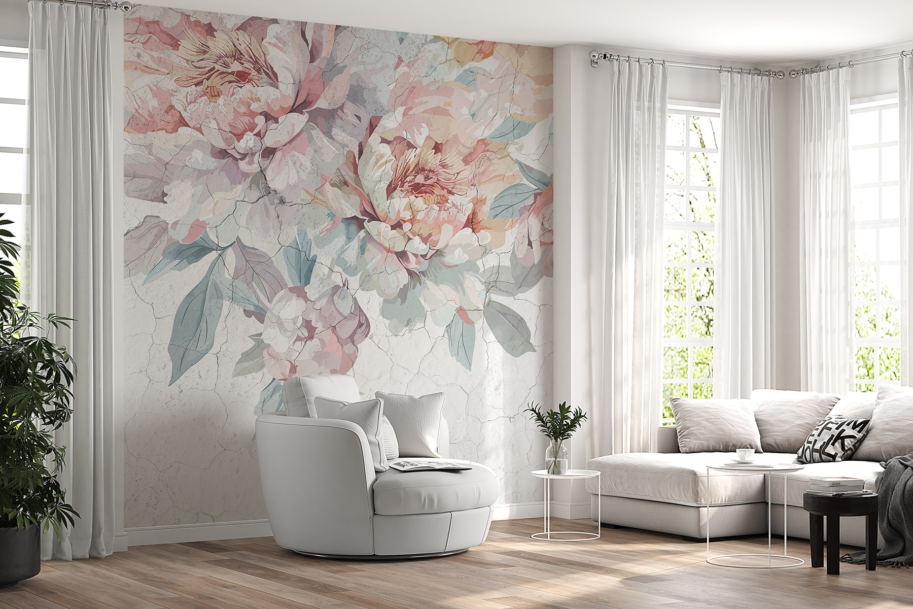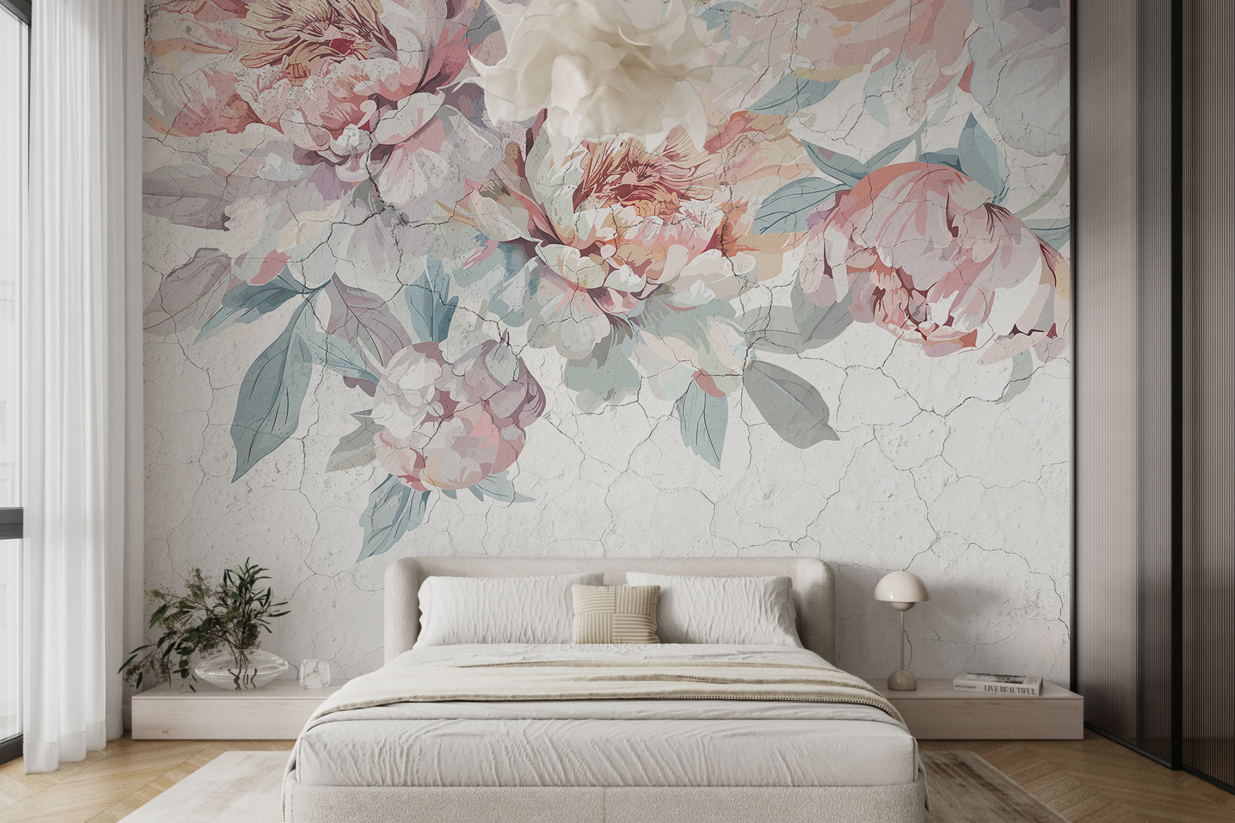 Premeňte akúkoľvek miestnosť na pokojný únik s nástennou maľbou Pastelové pivonky na jemne popraskanom pozadí. Predstavte si to: vojdete do svojho priestoru a tam to je – jemné chumáče pivónií v jemných pastelových farbách tancujú po stene. Je to ako mať záhradu priamo v interiéri, bez peľových alergií. Jemné okvetné lístky prinášajú teplo a šarm, vďaka ktorým sa aj ten najnudnejší utorok bude cítiť výnimočne. Hostia sa možno len zastavia, napijú sa kávy a povedia: “Páni, to je krásne.” Vážne, kto by to nechcel? Táto nástenná maľba, ktorá je ideálna pre útulný kútik alebo rozprávkovú stenu, bez námahy okorení každú atmosféru. Navyše určite vyvolá radosť – len si predstavte, že sa ponoríte do tejto príjemnej atmosféry!