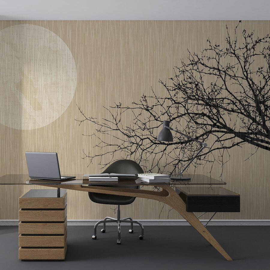 Pozrite si túto super cool nástennú maľbu “Strom bez listov” z kategórií Obľúbené nástenné maľby a Príroda. Je to ako mať kúsok pokoja priamo na stene! Holé konáre na upokojujúcom pozadí vás prinútia myslieť na pokojné noci tesne pred tým, ako sa objaví jar. Perfektne sa hodí do útulného čitateľského kútika alebo aj nad vašu posteľ a tak trochu šepká: “Oddýchnite si.”